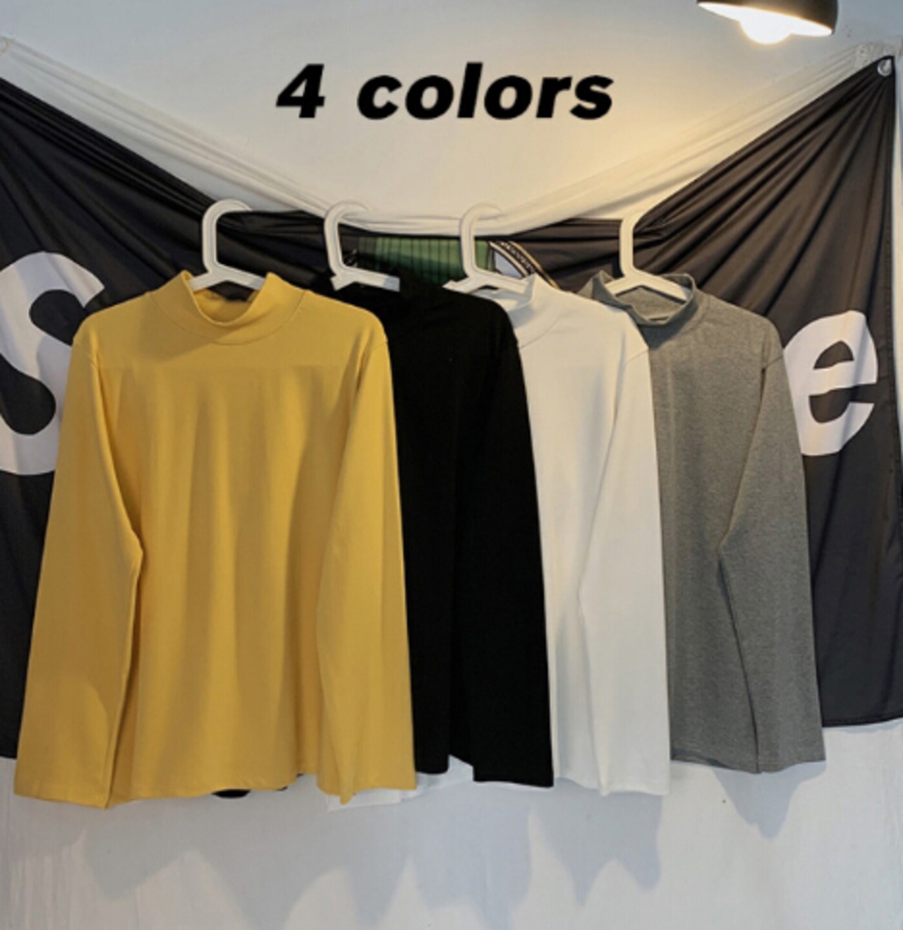 2021春 男女 トップス ロングTシャツ ブラウス ハイネック 長袖
