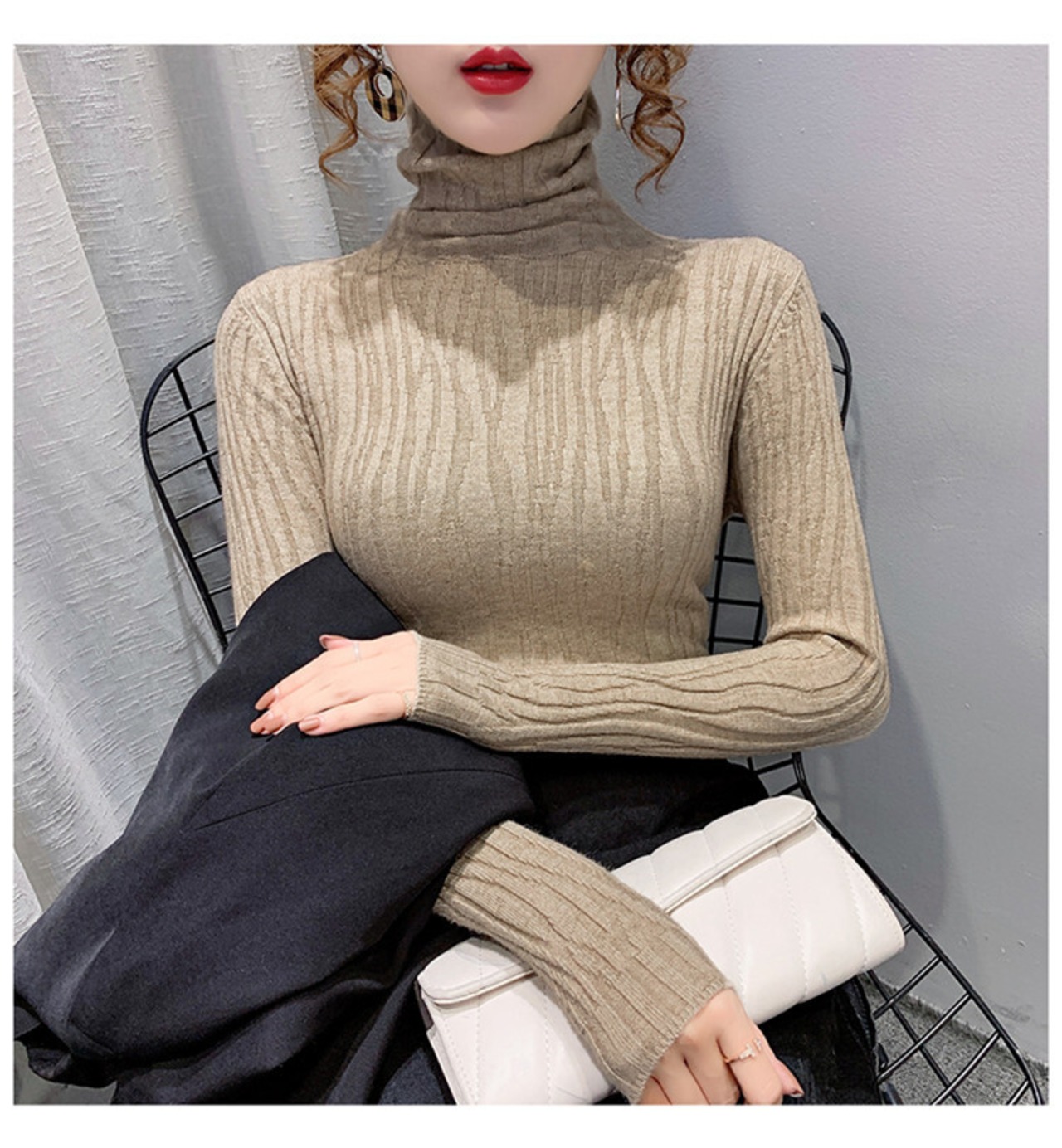 長袖 デザインセンス スリム 百掛け おしゃれな 暖かい タートルネック ニットセータ。しなやかで暖かみのある素材が肌触り良く、季節の変わり目に最適な一枚。シンプルでスリムなデザインがおしゃれな着こなしを叶えます。