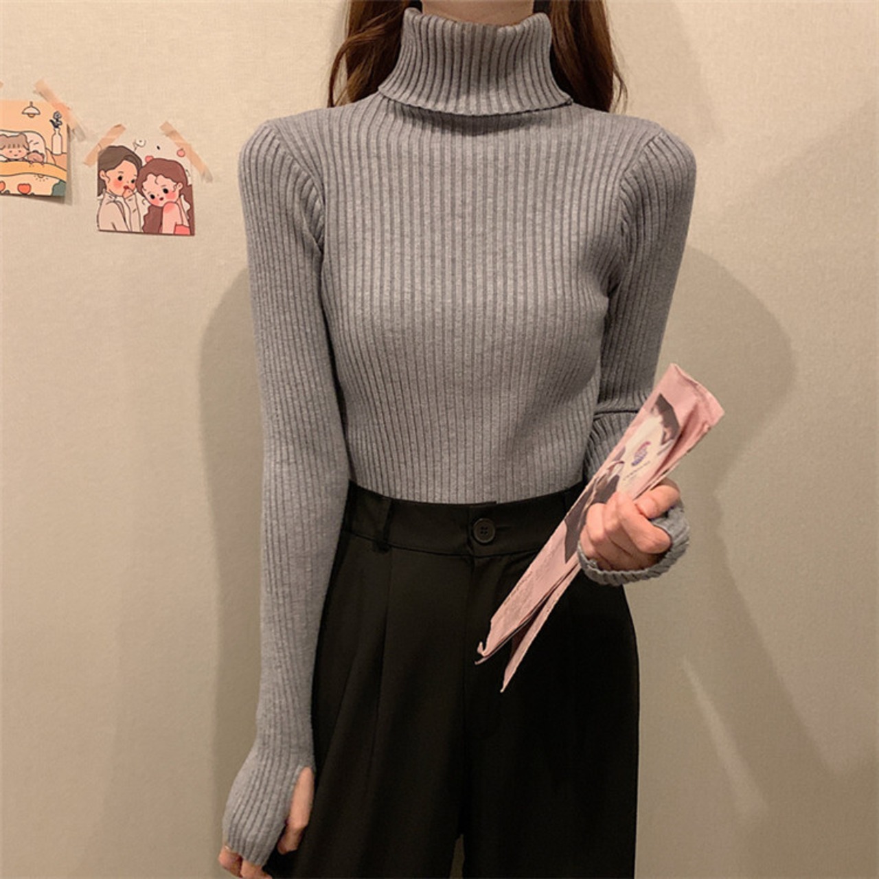 気質 シンプル セーター ニットトップス 短いスタイル タートルネック