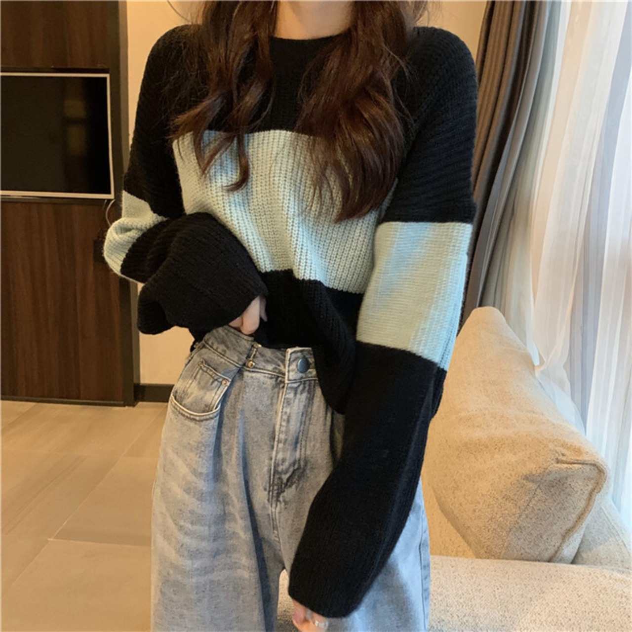 セーター トップス ゆったりする カラーマッチング 高品質 冬 厚い 女性 ニット 百掛け
