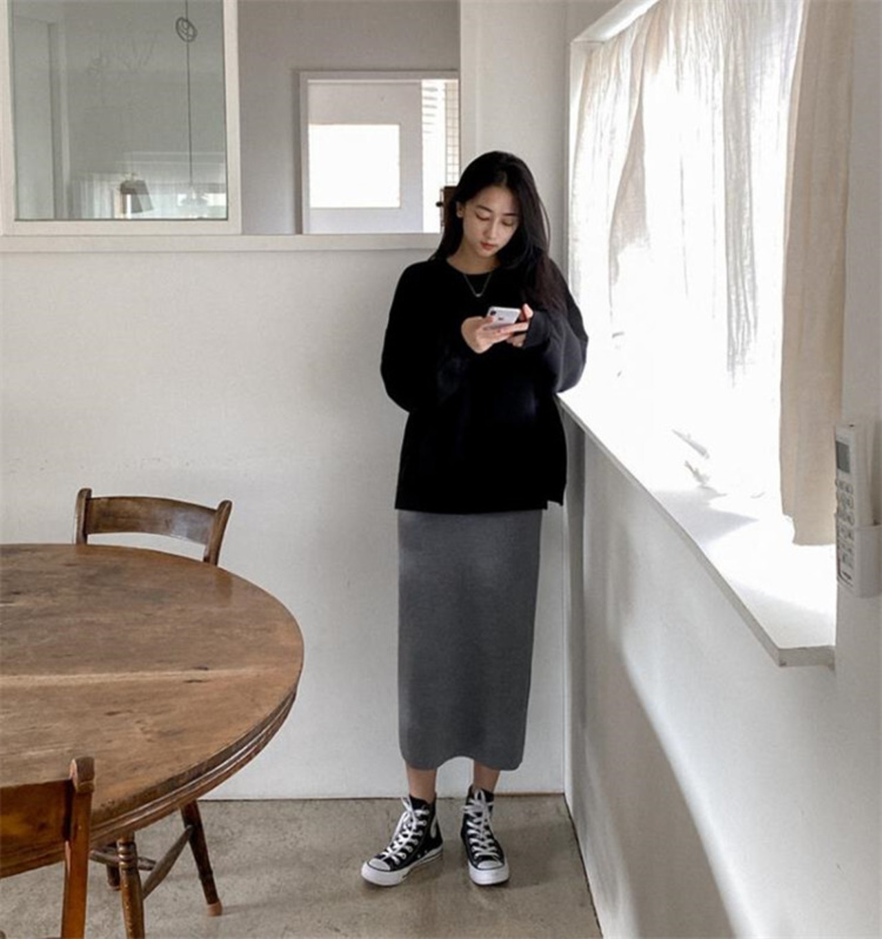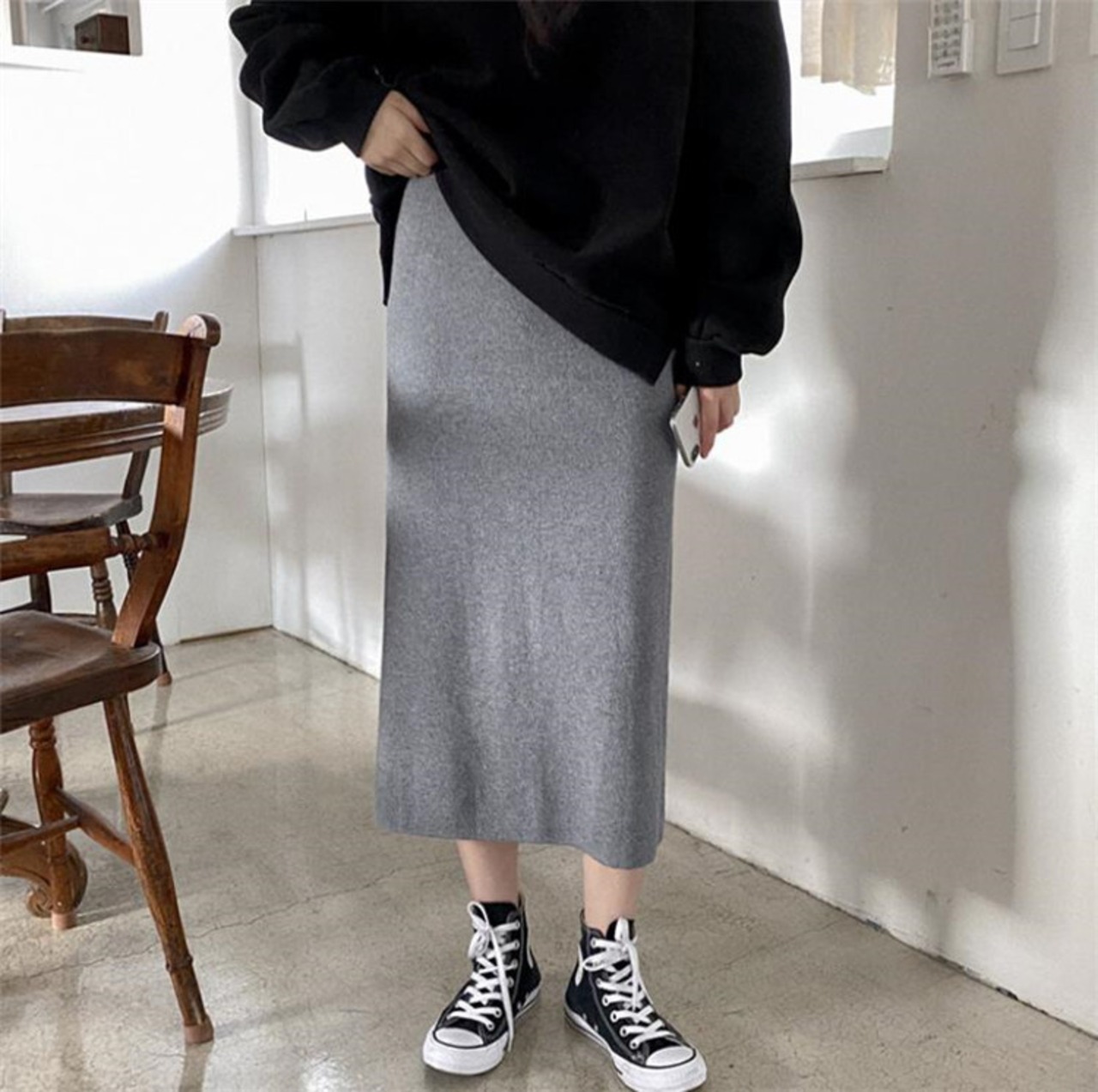 彼ら分岐のニットスカート 高いウエスト カジュアル 学生向け 100% の発売 スリム シンプルな雰囲気 お洒落 -