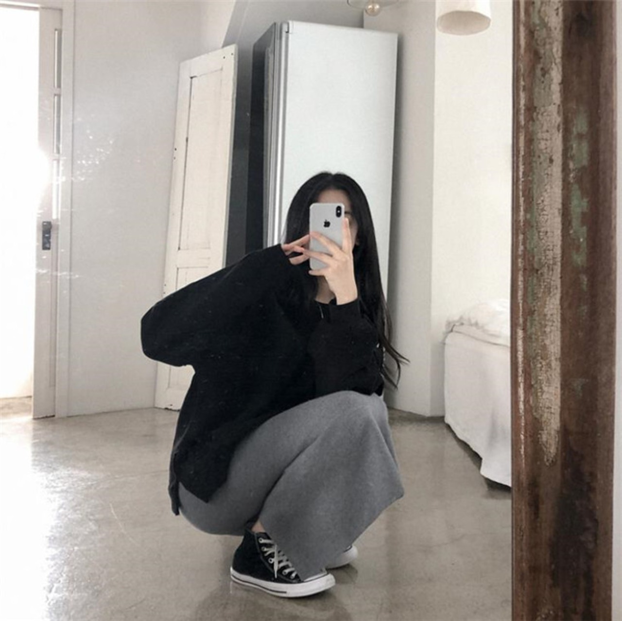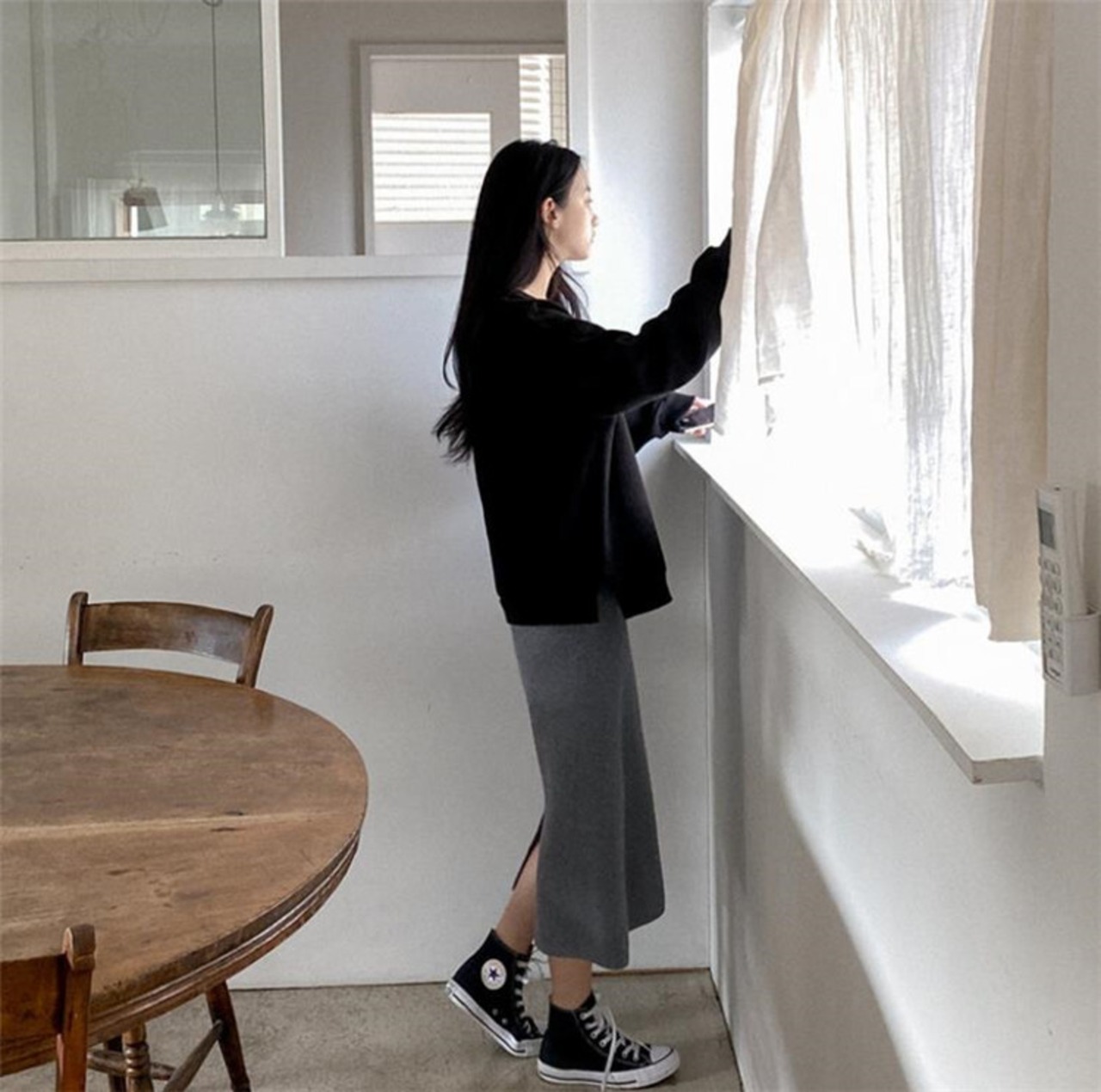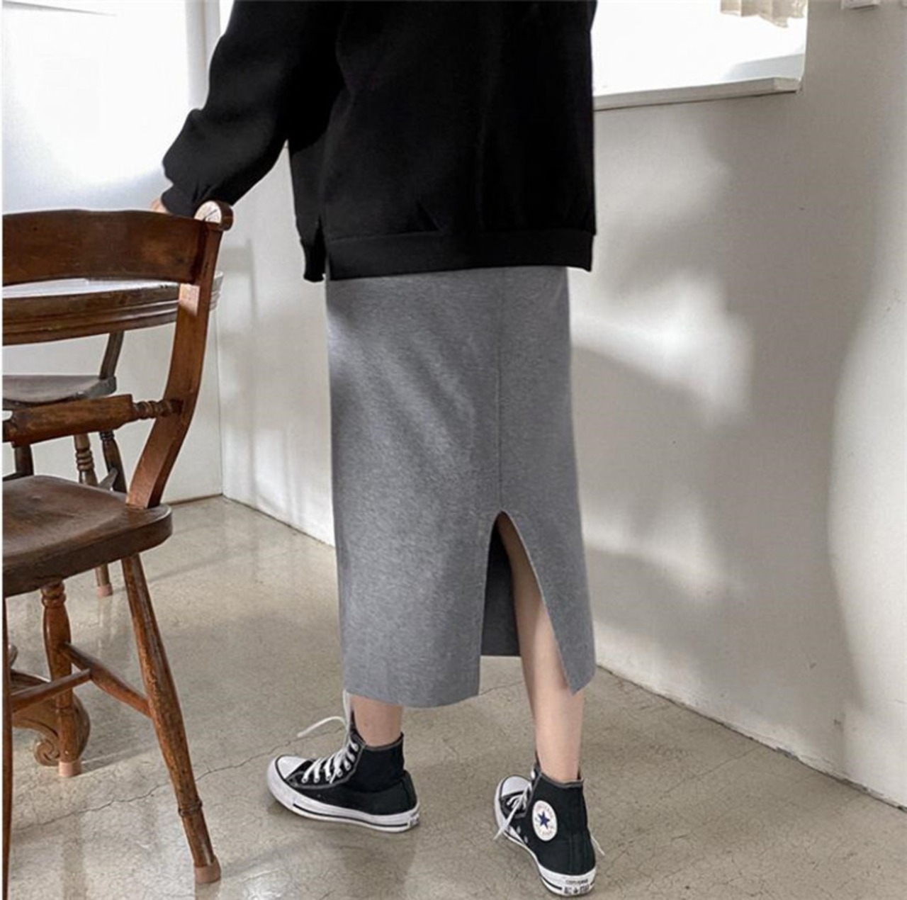 スプリット ニット スカート ハイウエスト カジュアル 学生 百掛け スリム シンプル 気質 おしゃれな