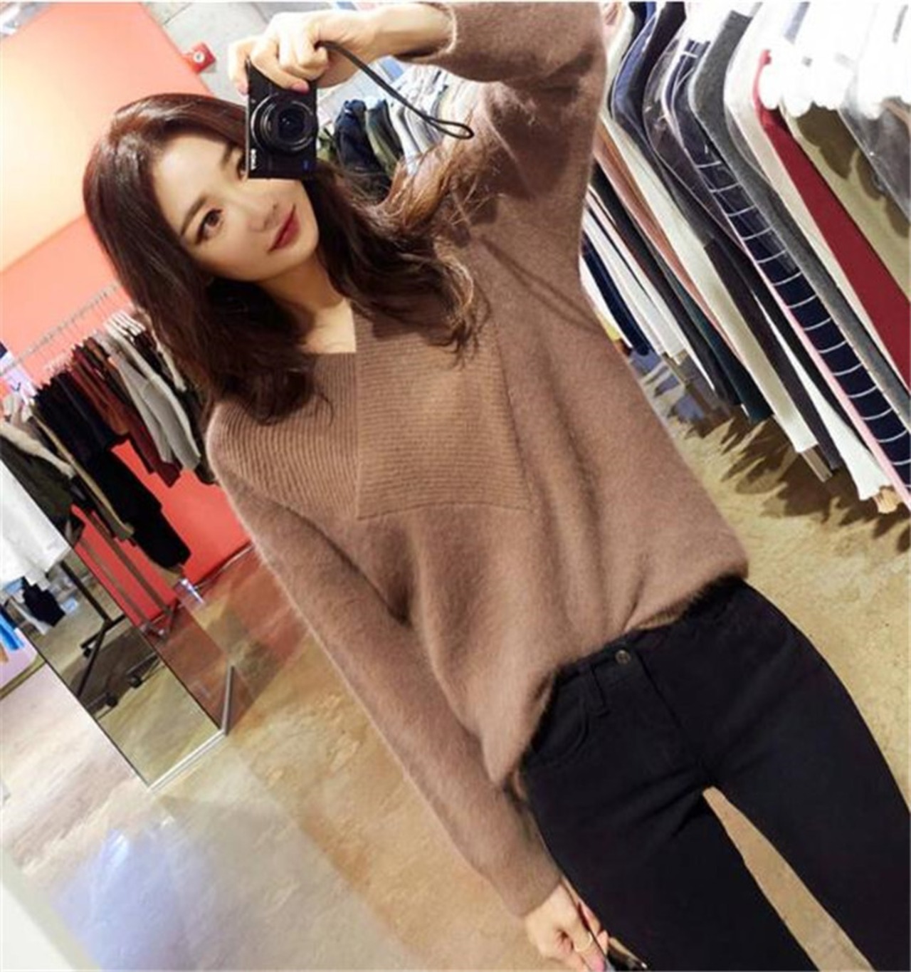 ニット 女性 短いスタイル 暖かい 百掛け おしゃれな 深いVネック セーター
