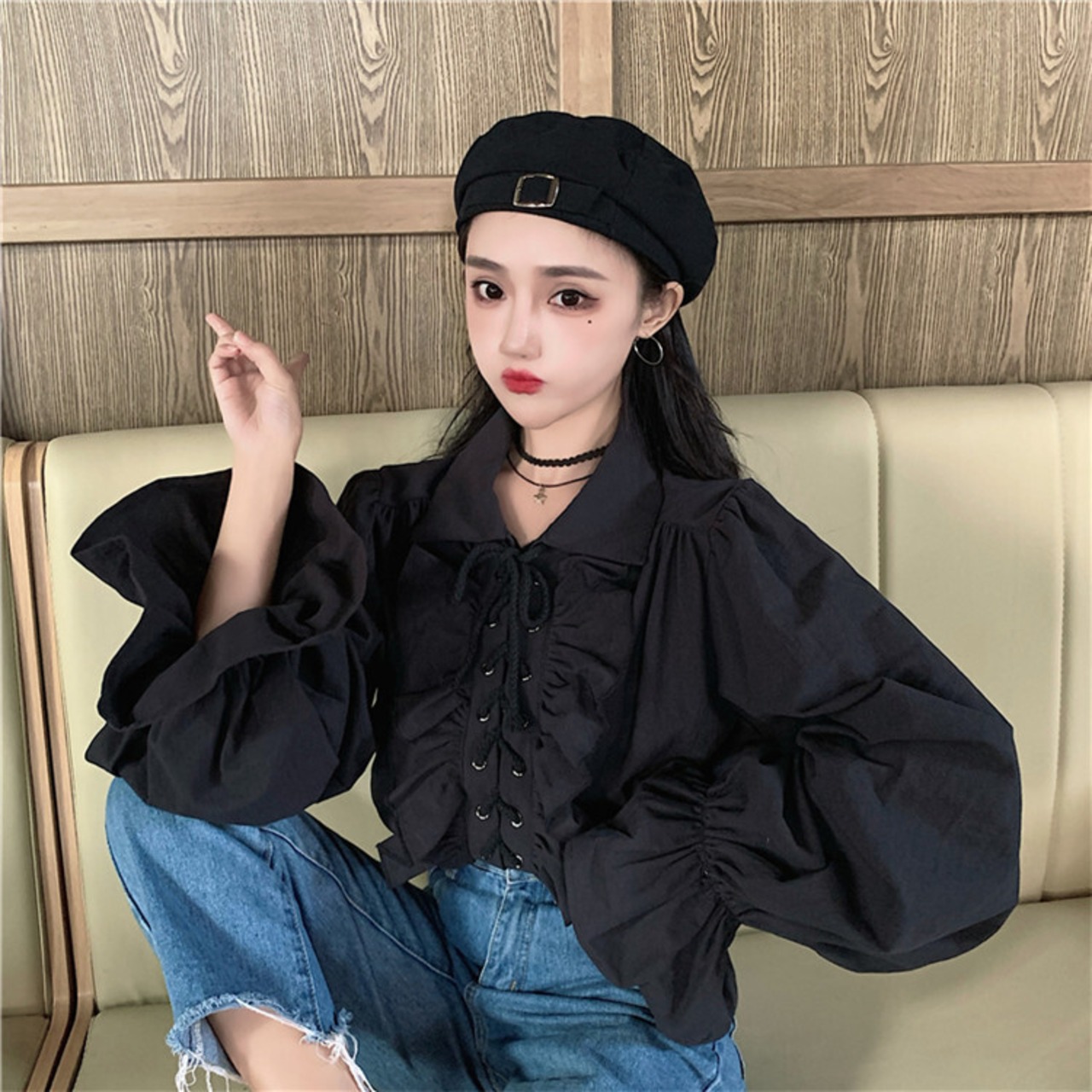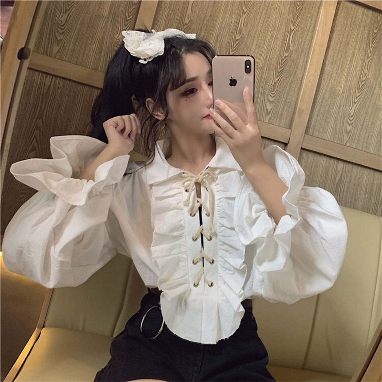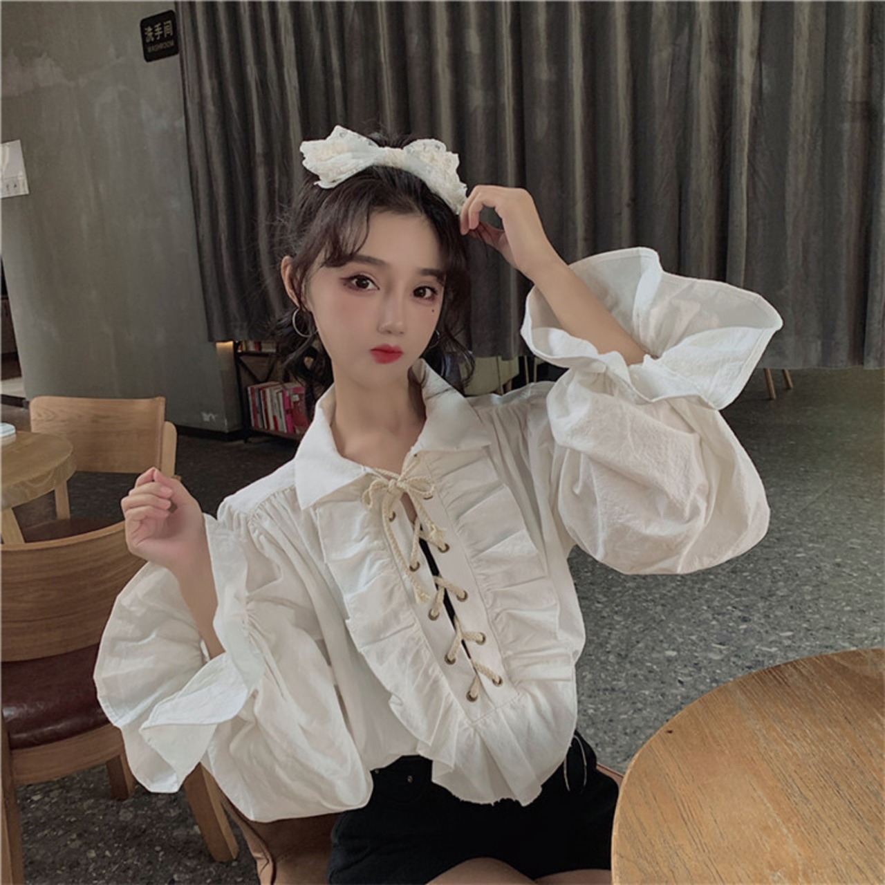 フリル 巾着 シャツ ホーンスリーブ 個性 レトロ sweet系 可愛い 気質 減齢 おしゃれな デザインセンス