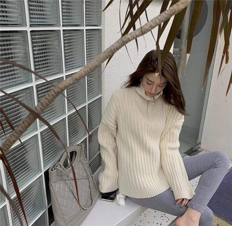 女性 レトロ タートルネック トップス ゆったりする スリム ニット 百掛け