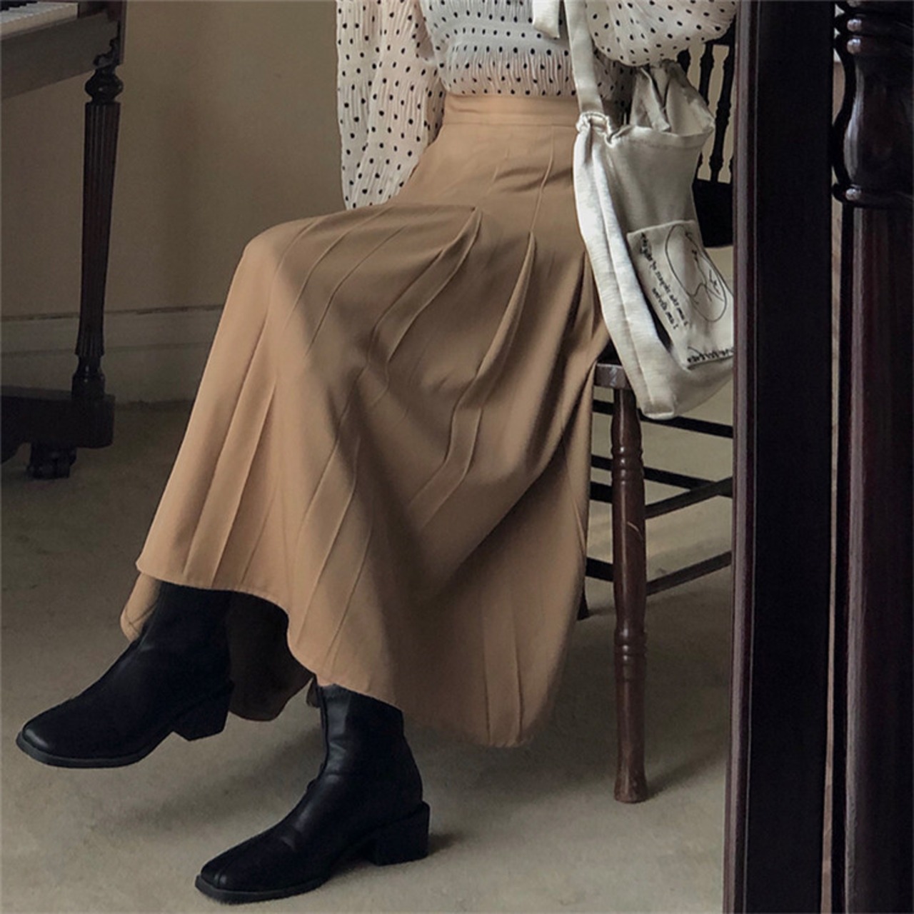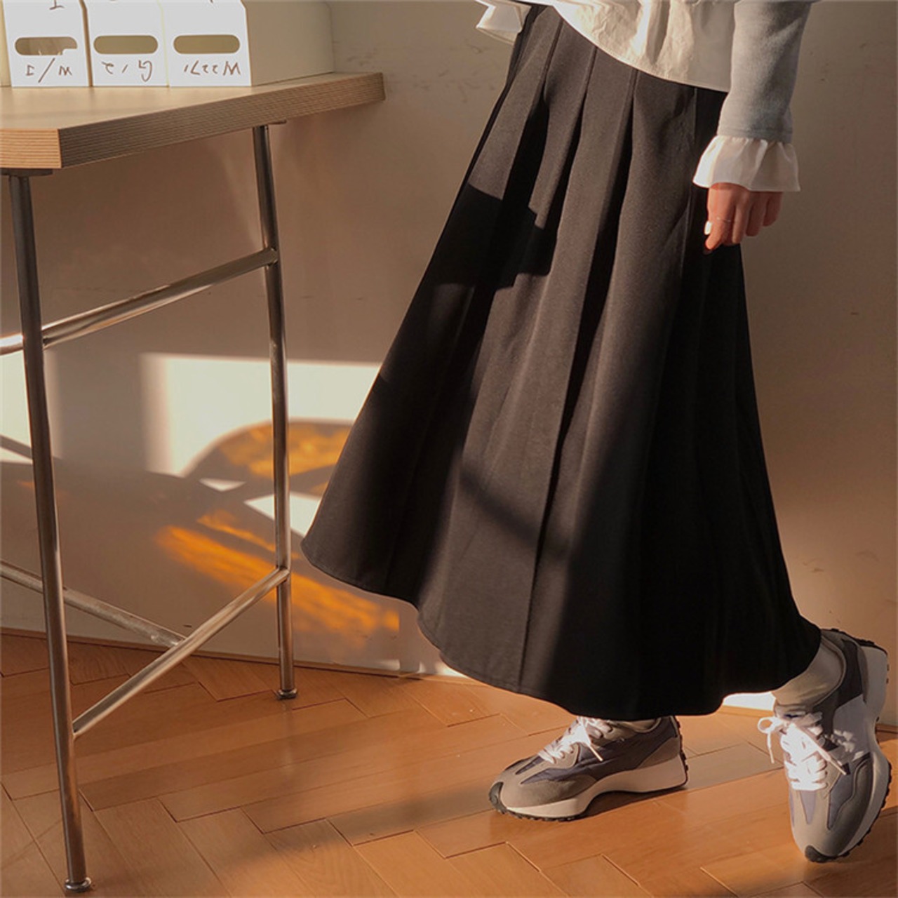 おしゃれに見えるシンプルコーデに秋 冬 中・長セクション スカート 大スイング シンプル アウトドア