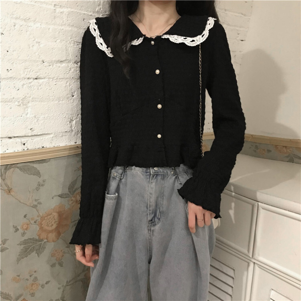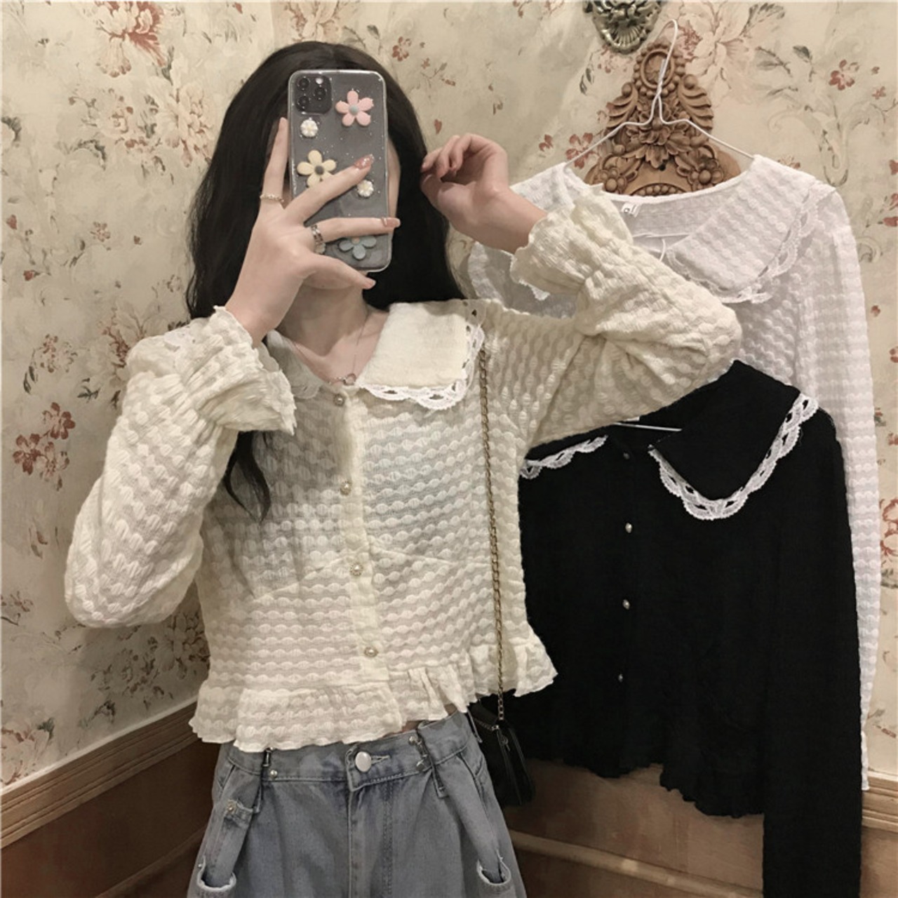 着映えが狙える2021 新品 早春 レース 縫付 トップス 人形の襟 選べる3色 レトロ sweet系 学院風 百掛け