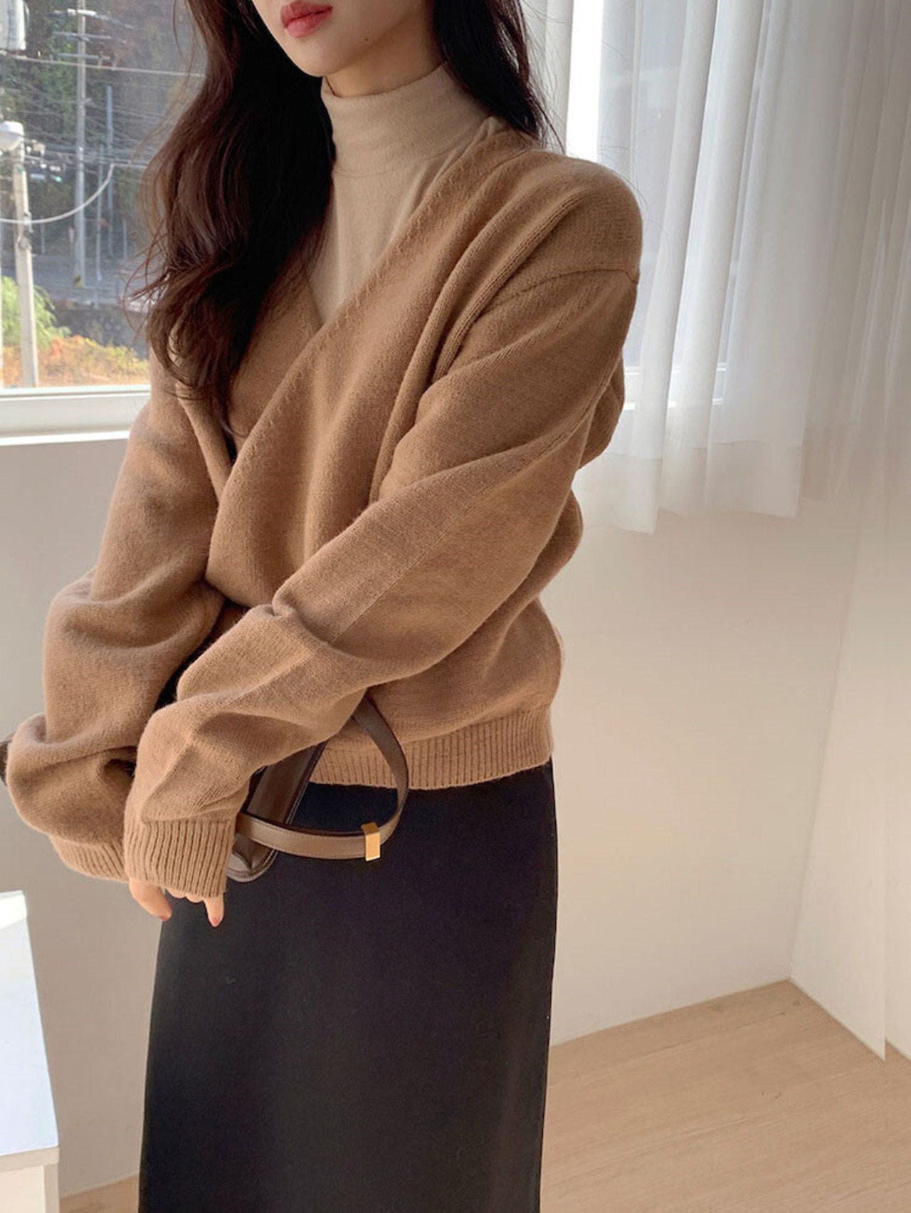 程良い辛さを効かせたデザイン ロマンティック 交差する Vネック 肌にやさしい 気質 セーター