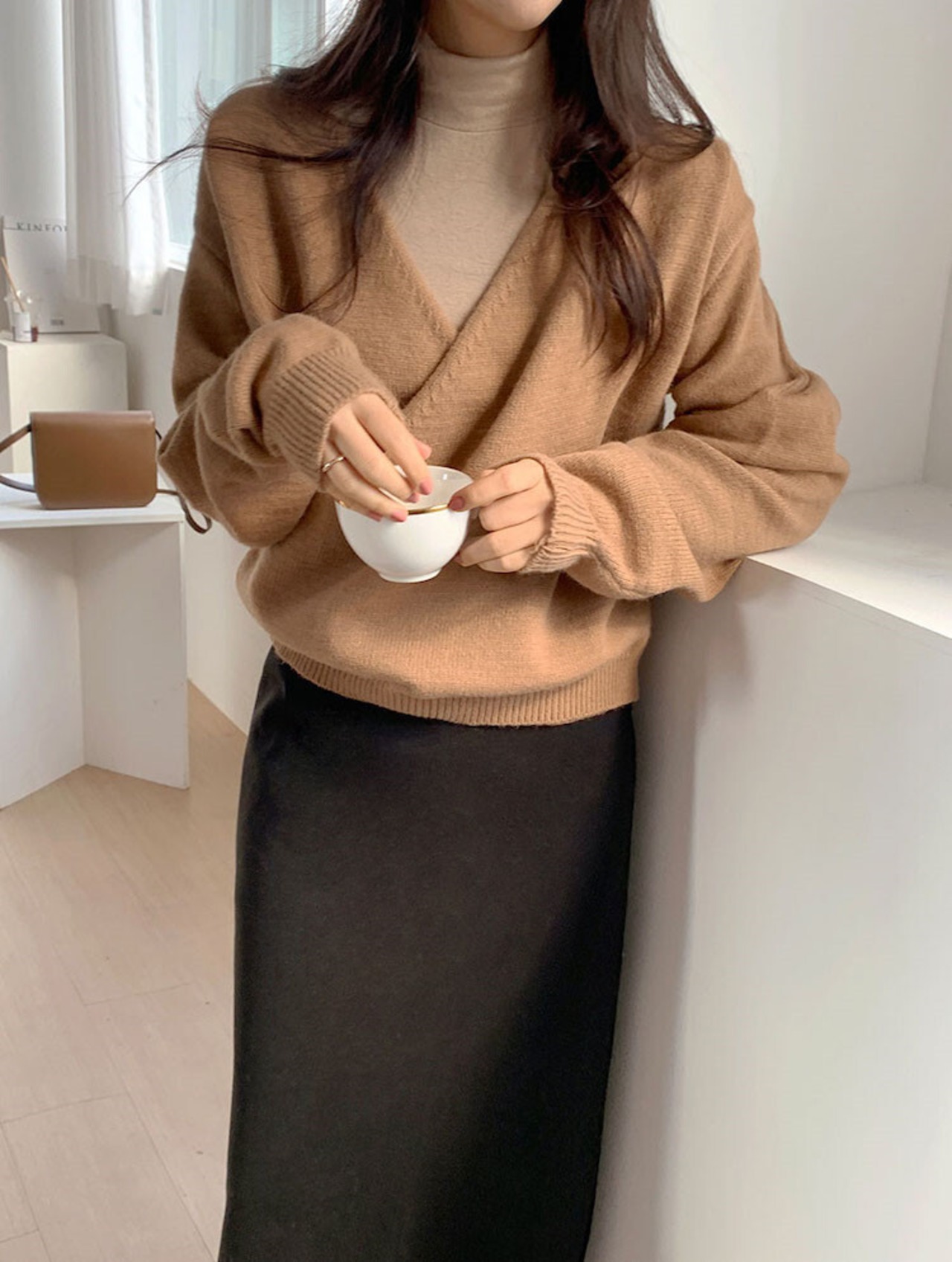 ロマンティック 交差する Vネック 肌にやさしい 気質 セーター