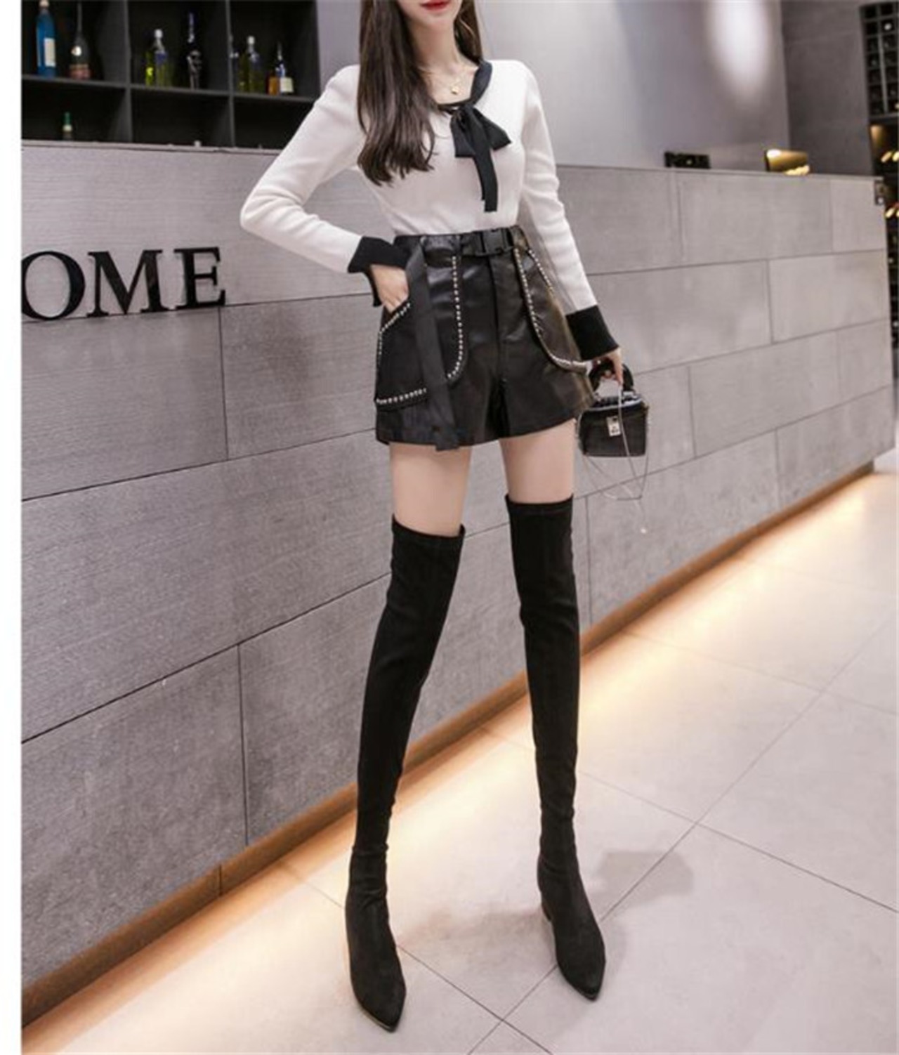 このハイウエスト リベット ワイドレッグ ホットパンツは、脚を長く美しく見せる高いウエストラインが特徴のアイテムです。ワイドレッグデザインで、ゆったりとした履き心地とおしゃれな印象を演出します。リベットやPUレザー素材が使用されており、スタイリッシュかつファッショナブルな雰囲気を醸し出します。