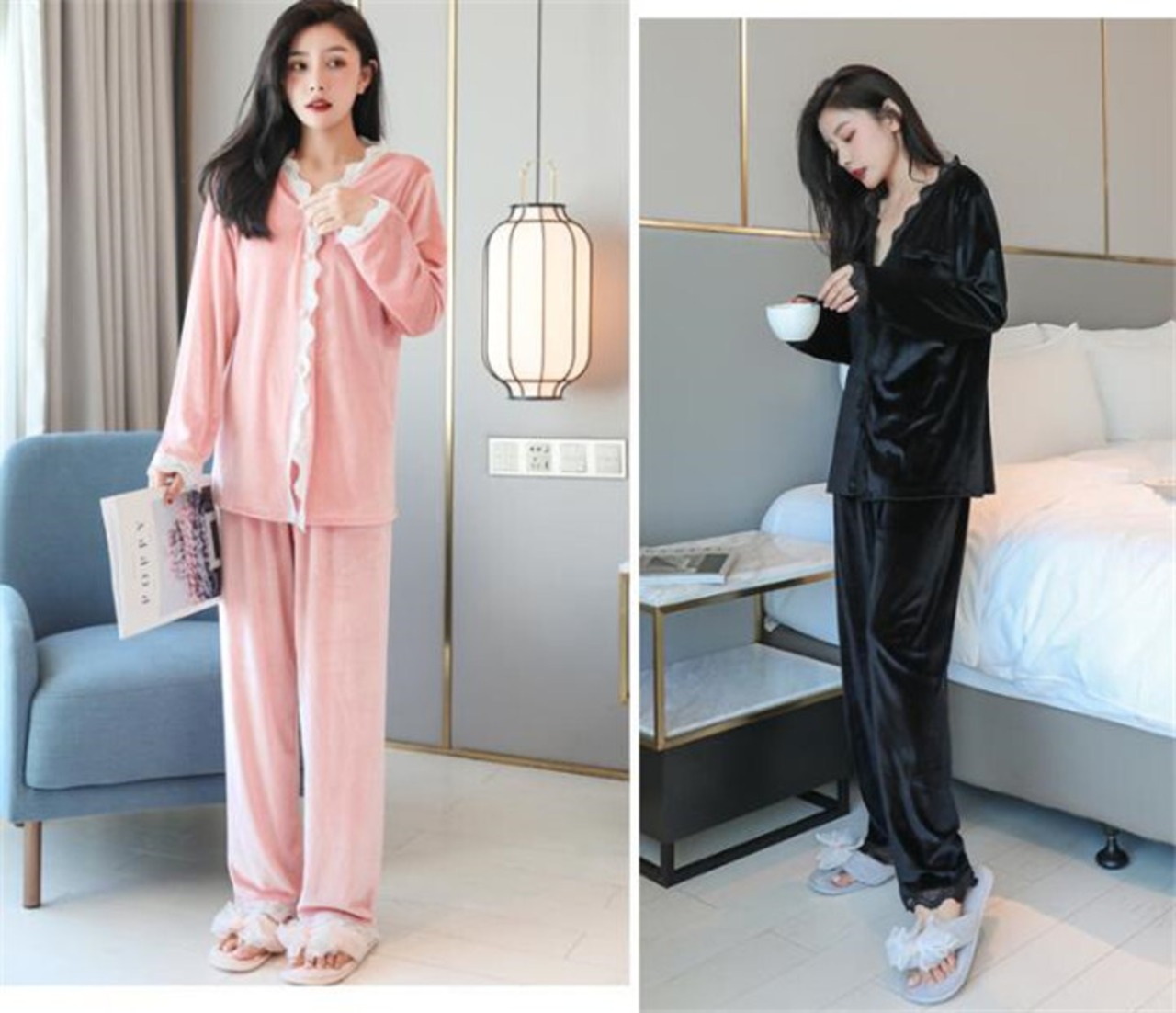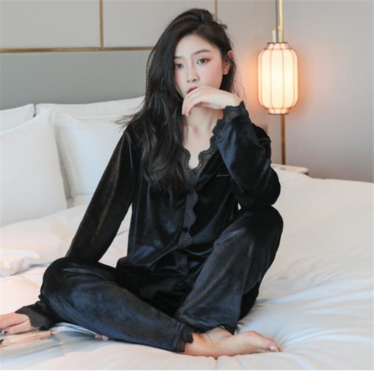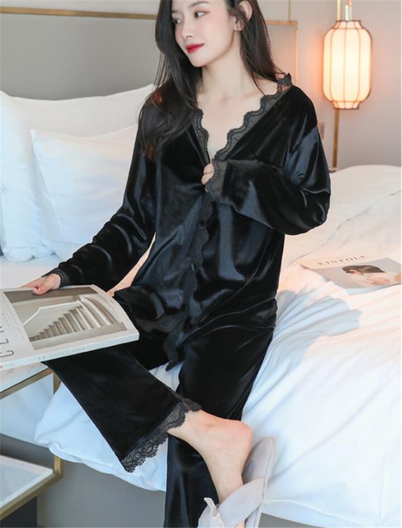 ルームウェア Vネック 2点セット パジャマ 長袖 暖かい ゆったりする 気高い 百掛け 快適である