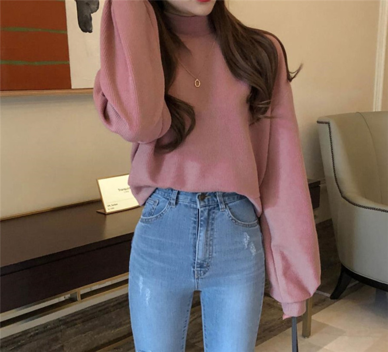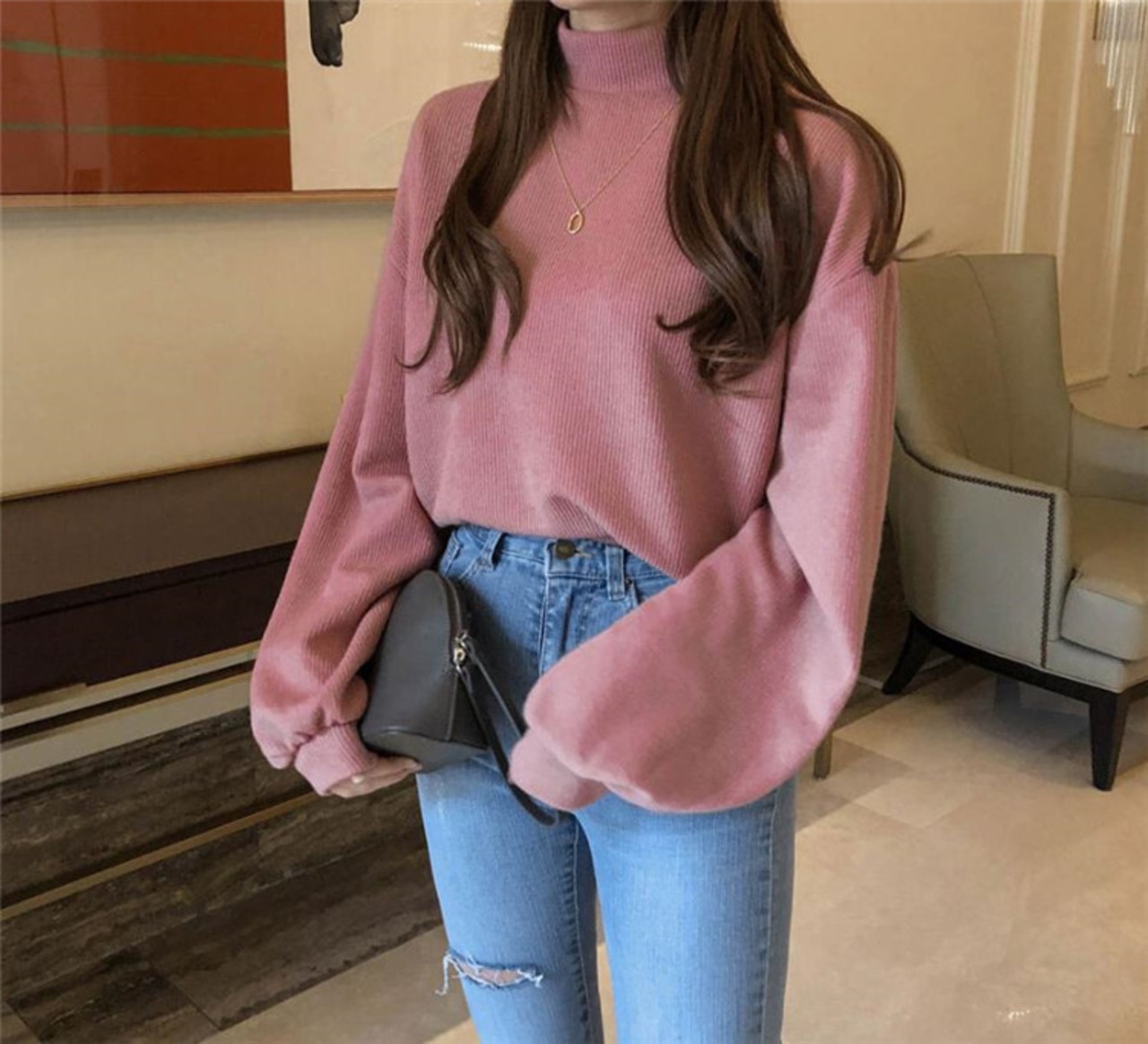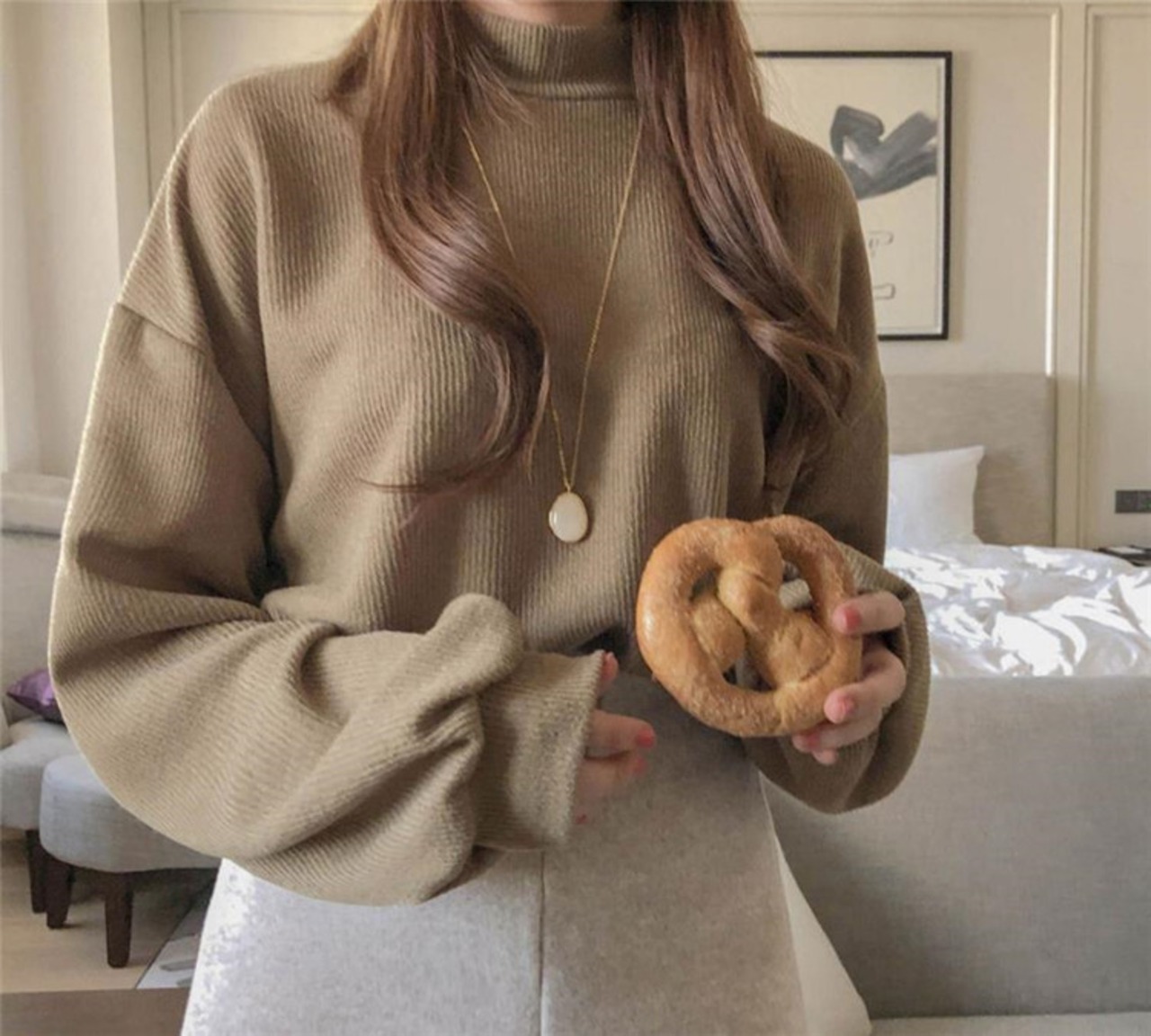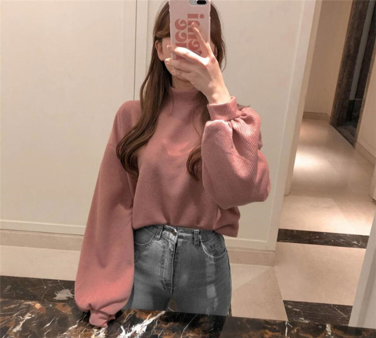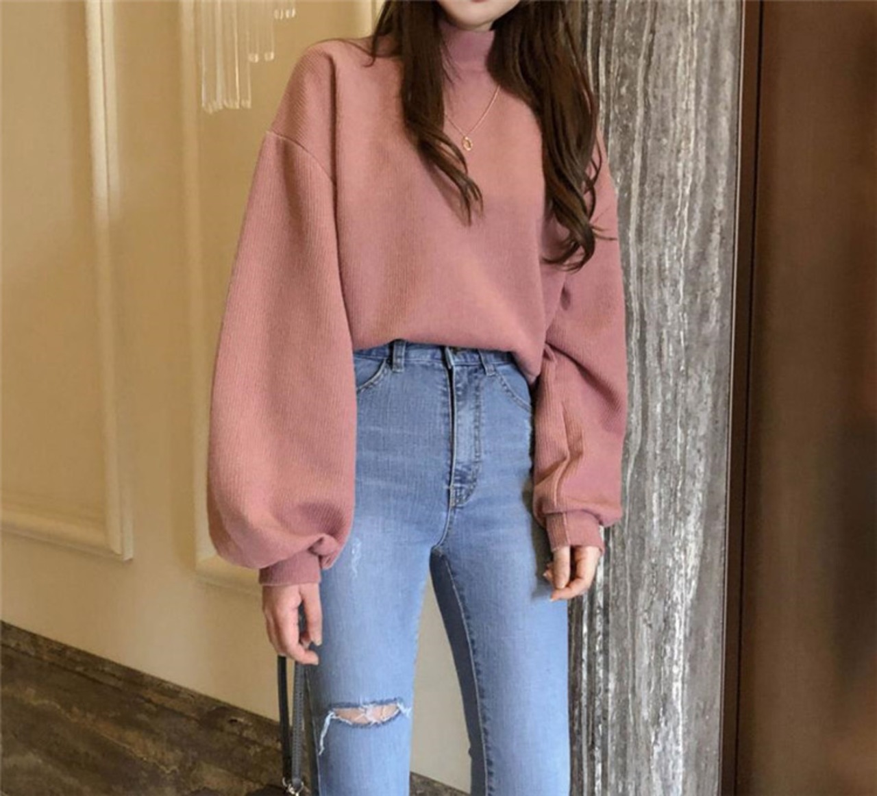 タートルネック ランタンスリーブ バーカー 簡約 百掛け ゆったりする トレンド