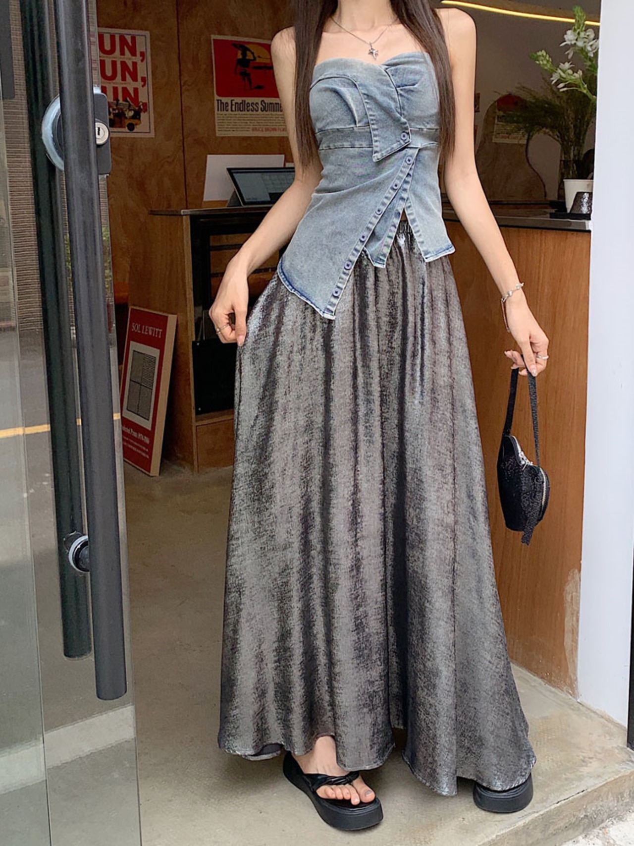 ハイウエスト 洗練された 新品 ロングスカート 夏 ジェントルスタイル Aライン 大きい裾