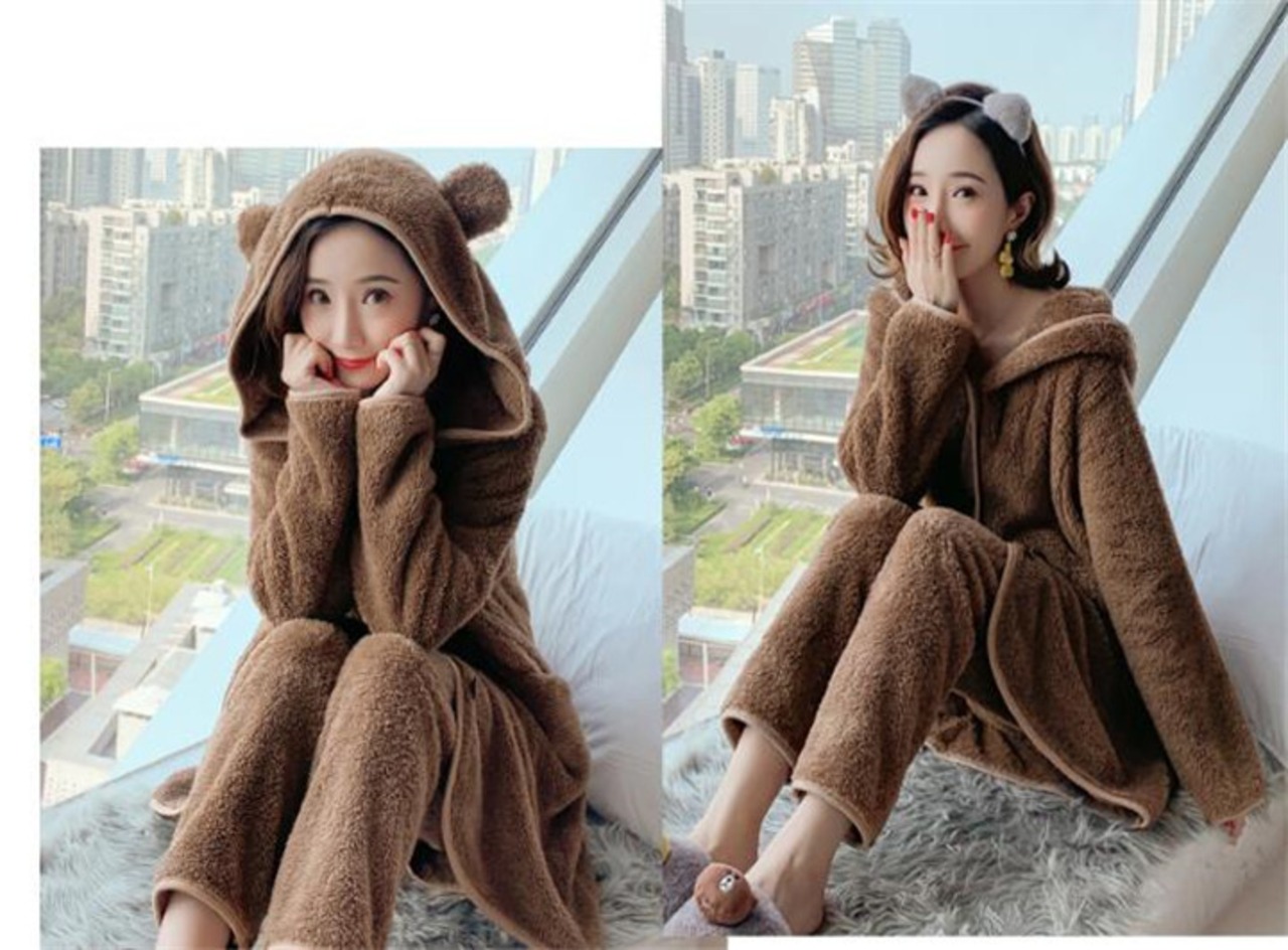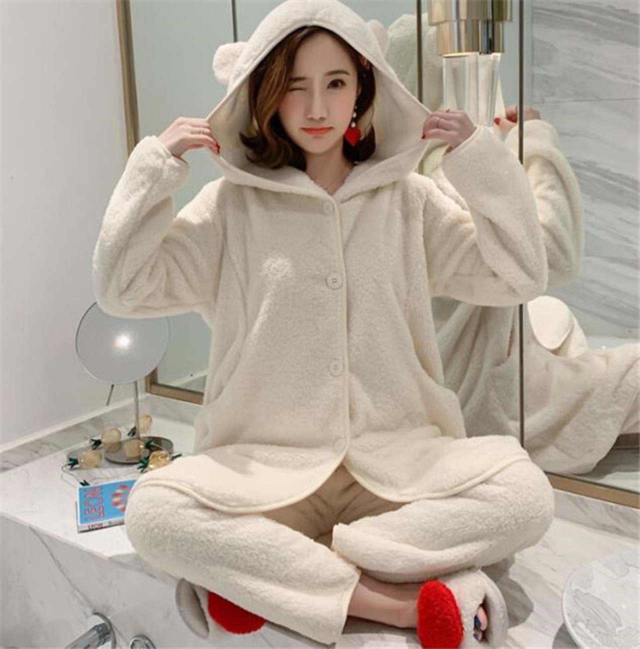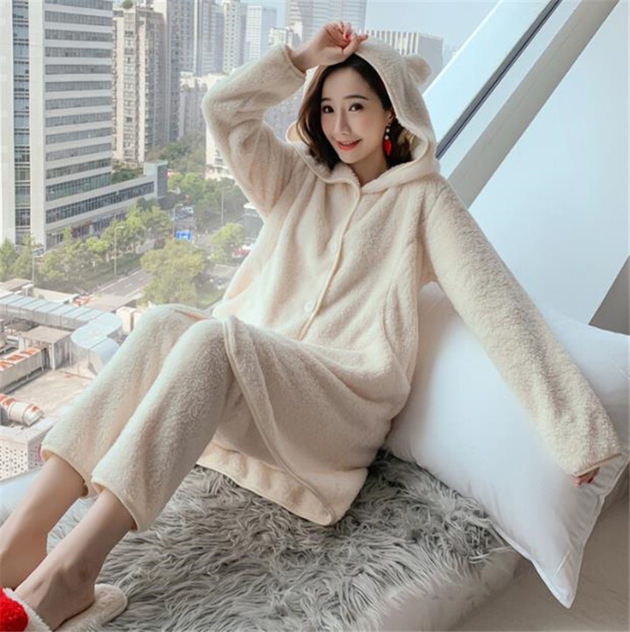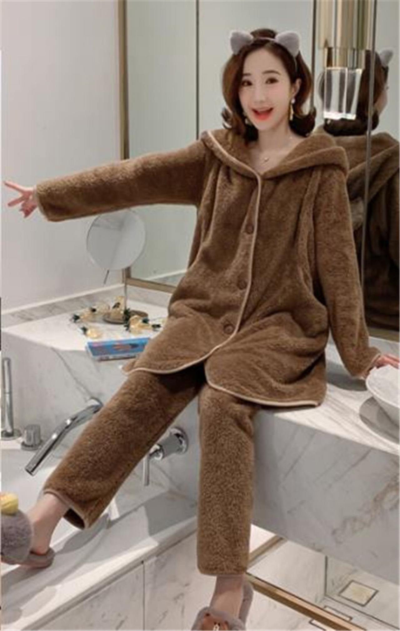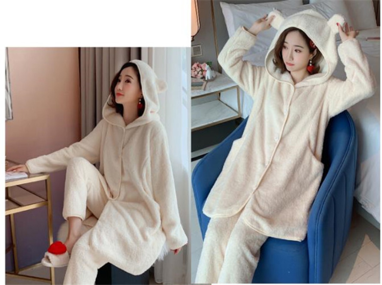 快適である 女性 秋 冬 かわいい 小さい新鮮な 学生 フランネル ルームウェア 暖かい シンプル