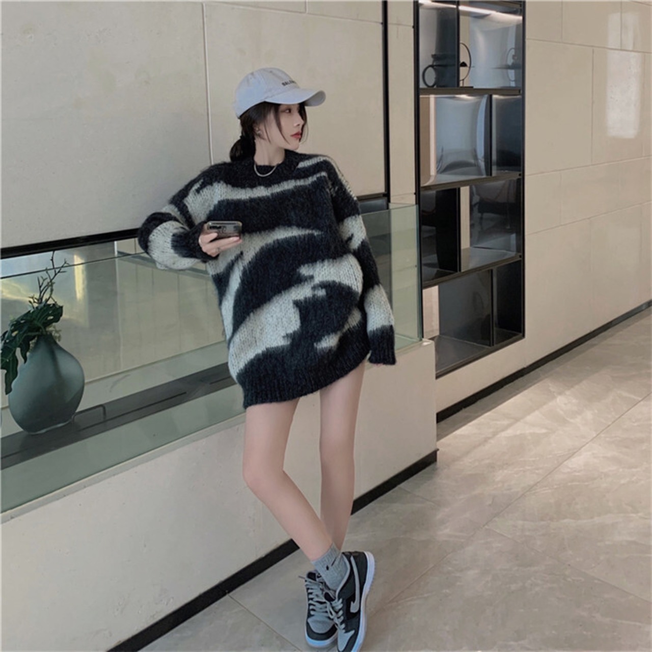 ラウンドネック セーター 長袖 カラーマッチング 暖かい 怠惰な風 百掛け 個性 ゆったりする トレンド