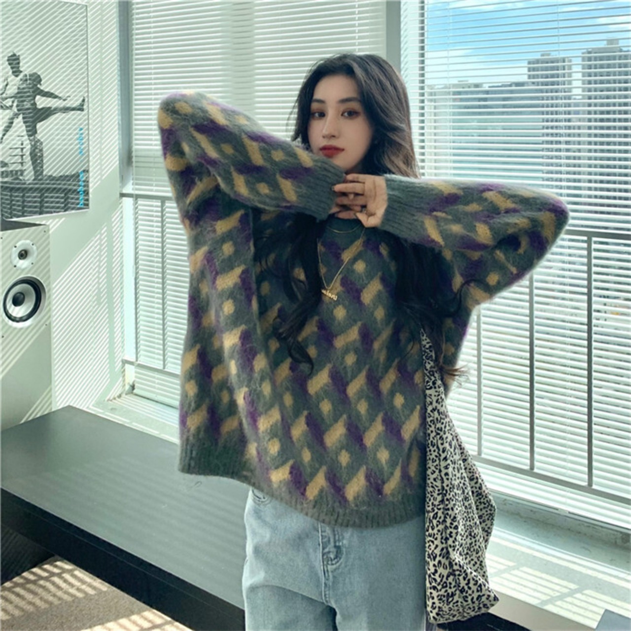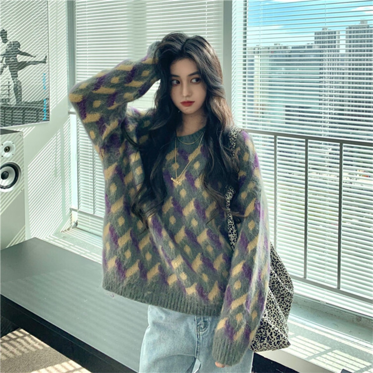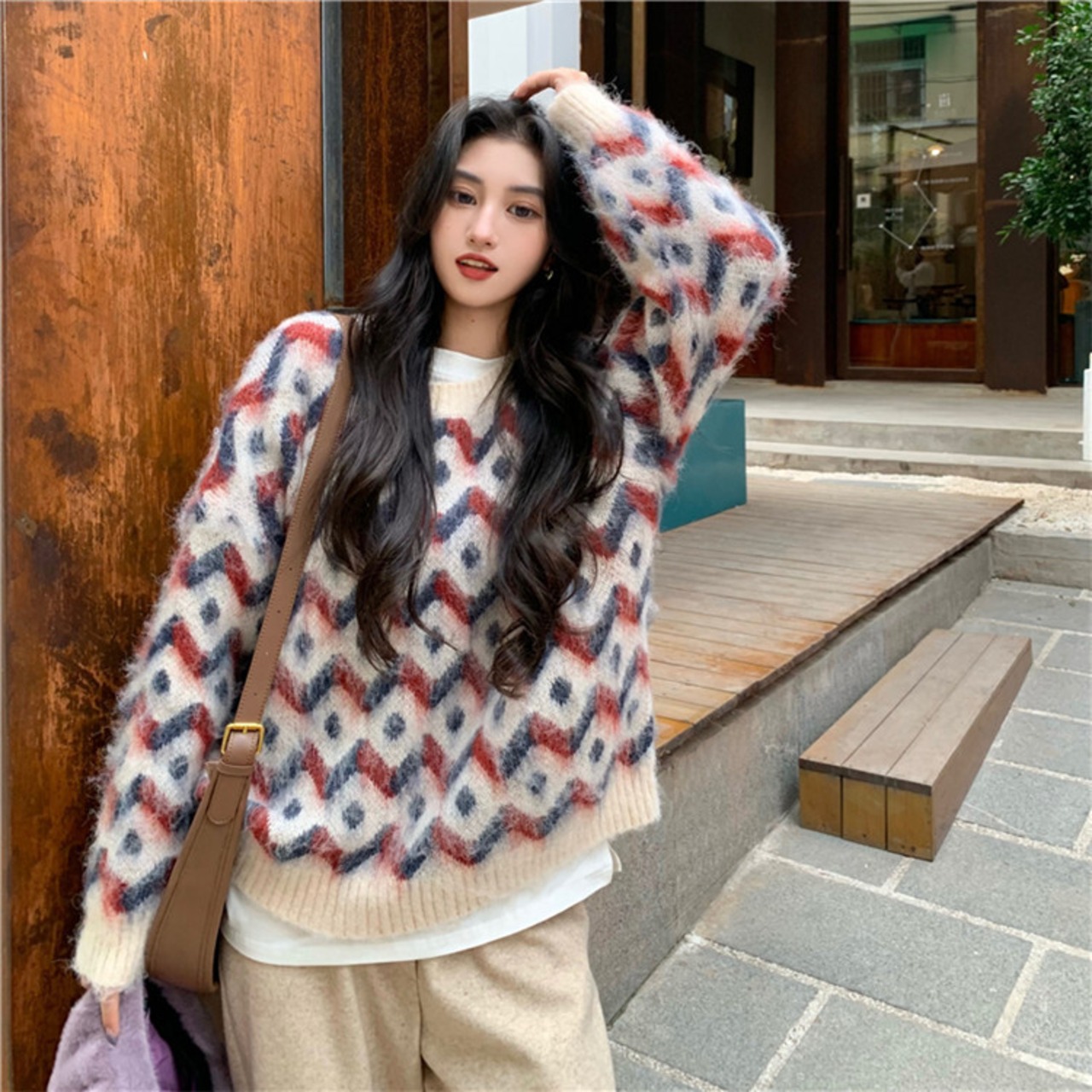 モヘア セーター きかがくもよう カラーマッチング カジュアル ゆったりする スリム 百掛け sweet系