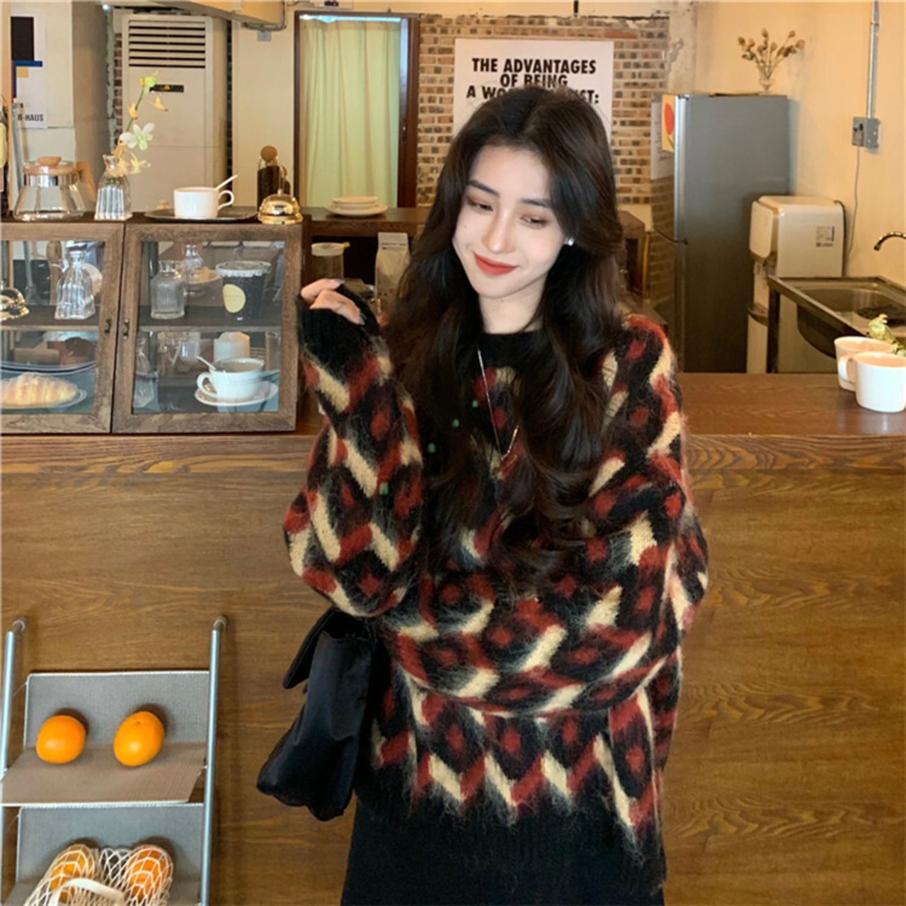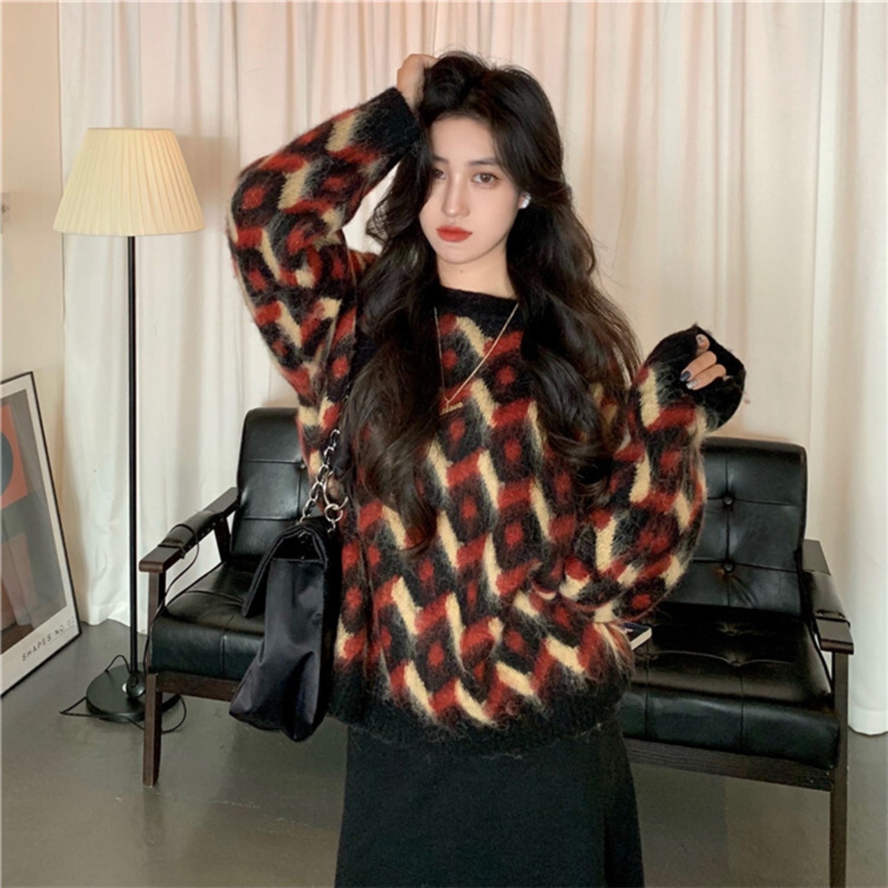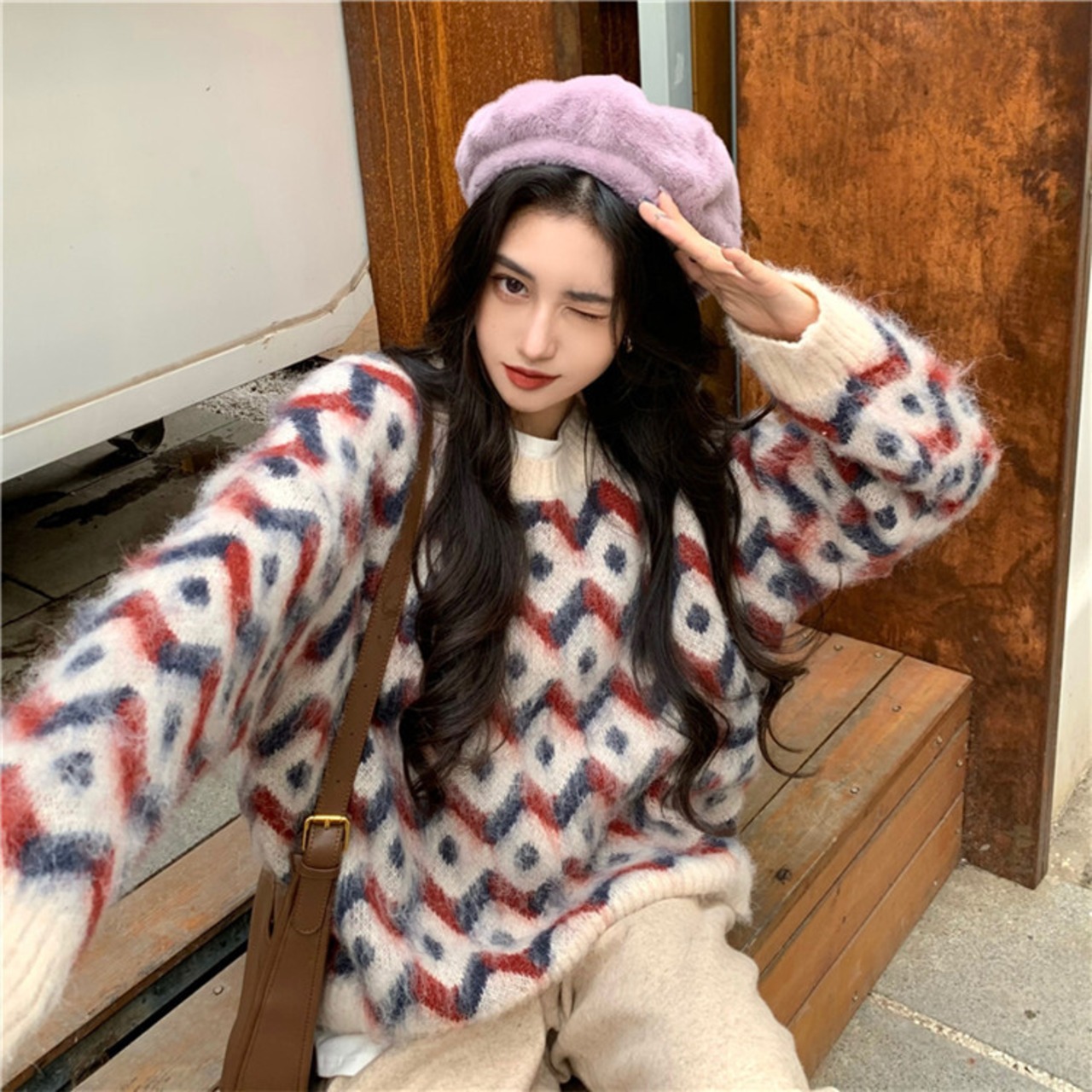モヘア セーター きかがくもよう カラーマッチング カジュアル ゆったりする スリム 百掛け sweet系
