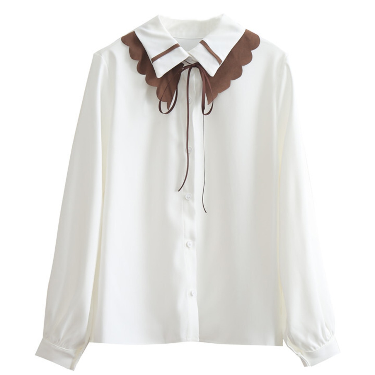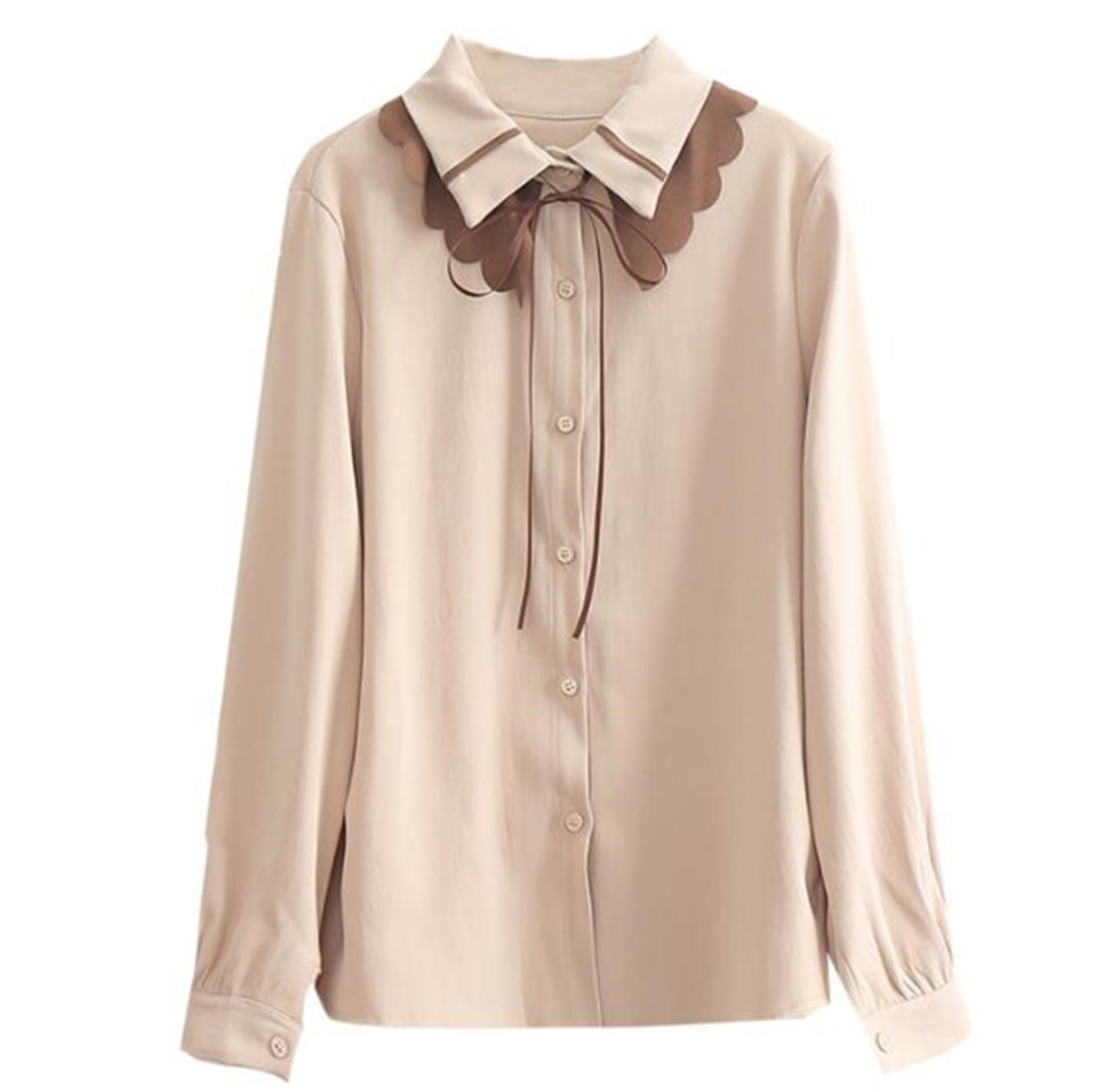 レトロ シャツ デザインセンス 女性 秋 冬 バンディング 蝶結び 人形の襟 長袖 上品映え sweet系