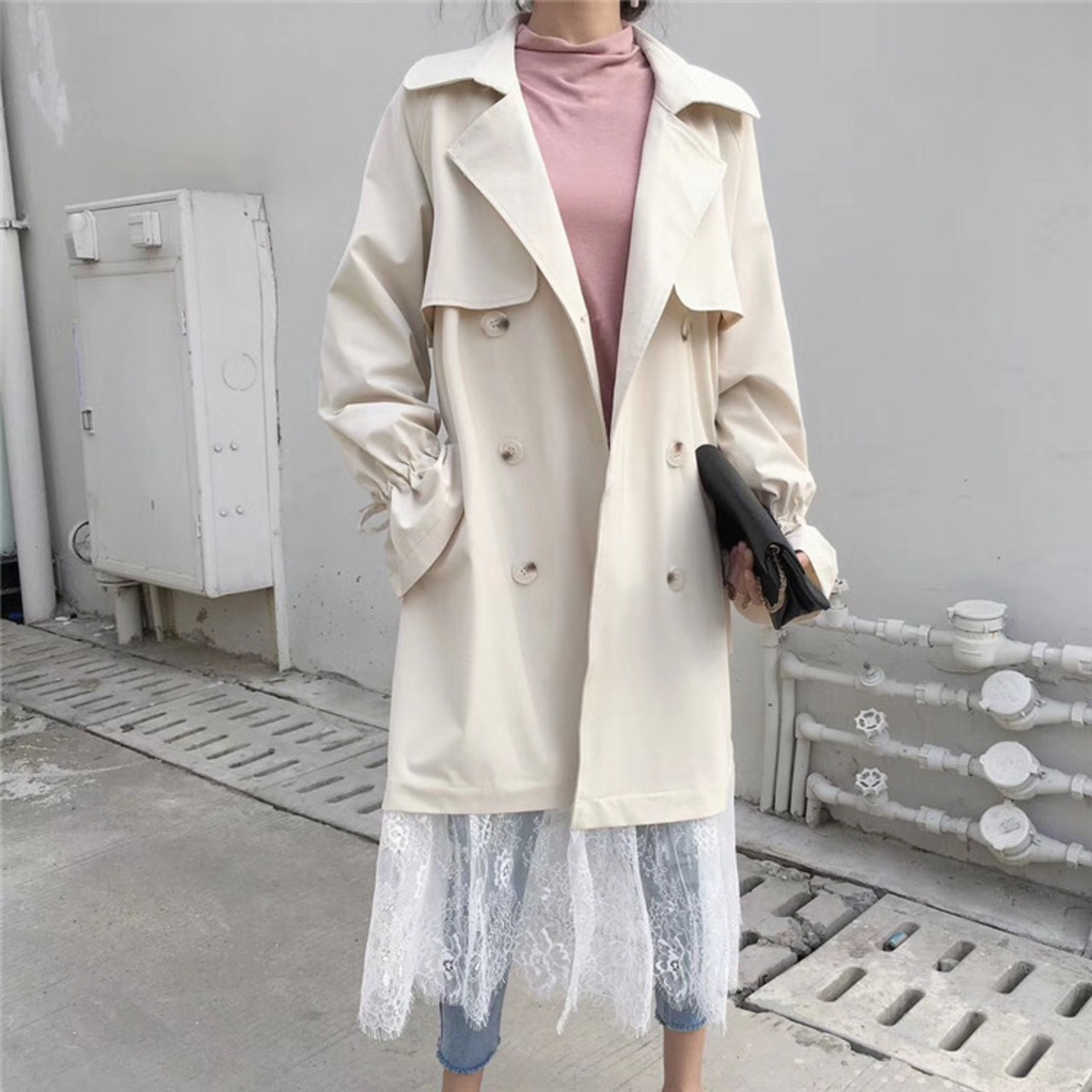 快適で暖かい レース ニット ウィンドブレーカー sweet系 ロングセクション ダブルボタン