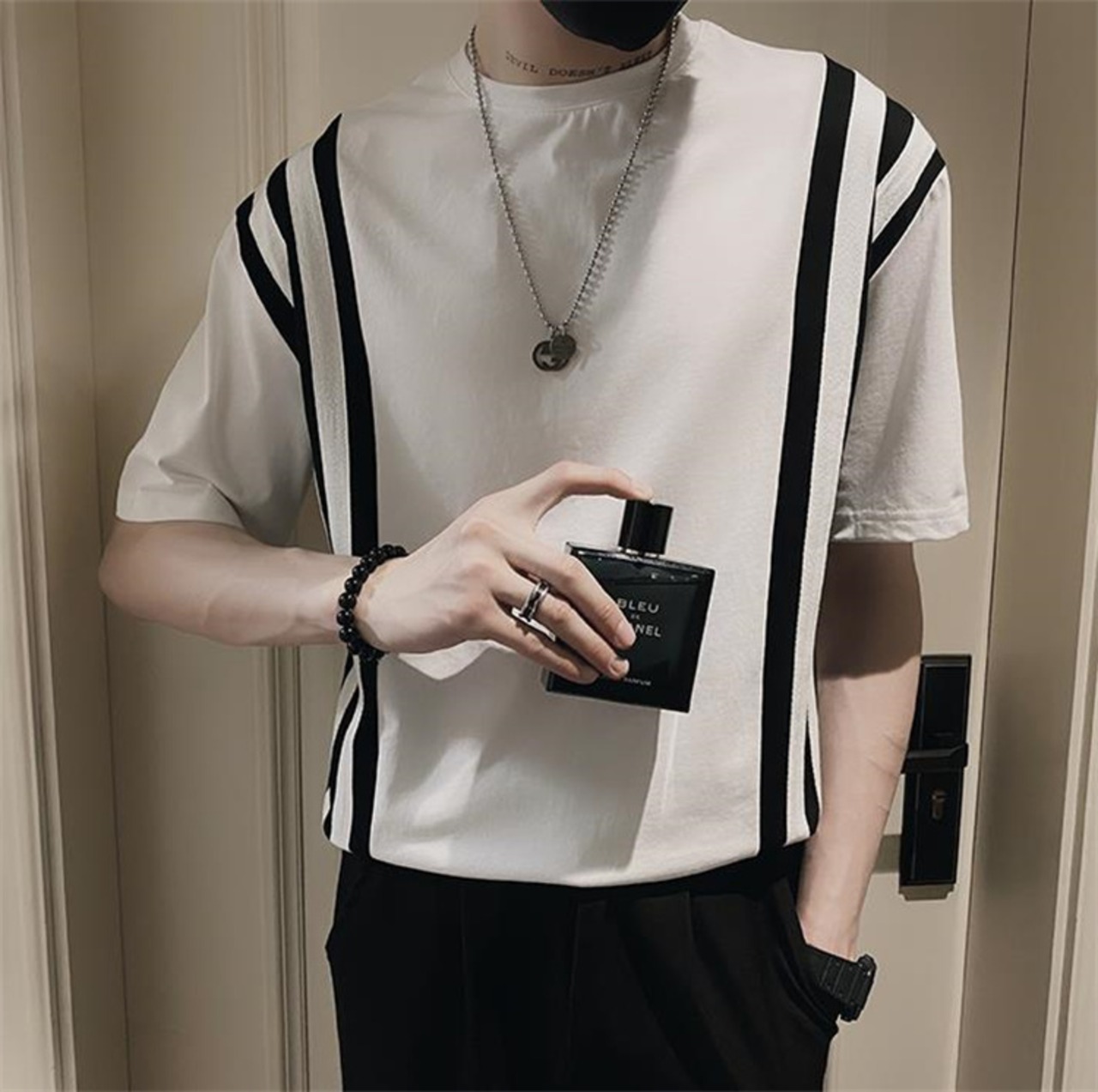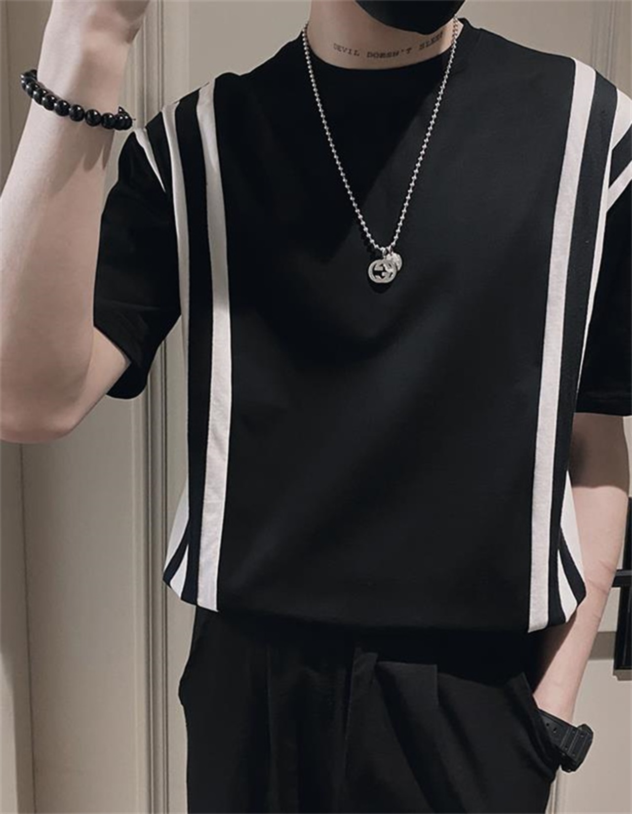 ラウンドネック スリム 交差する 半袖 カジュアル トレンド 縫付 Tシャツ