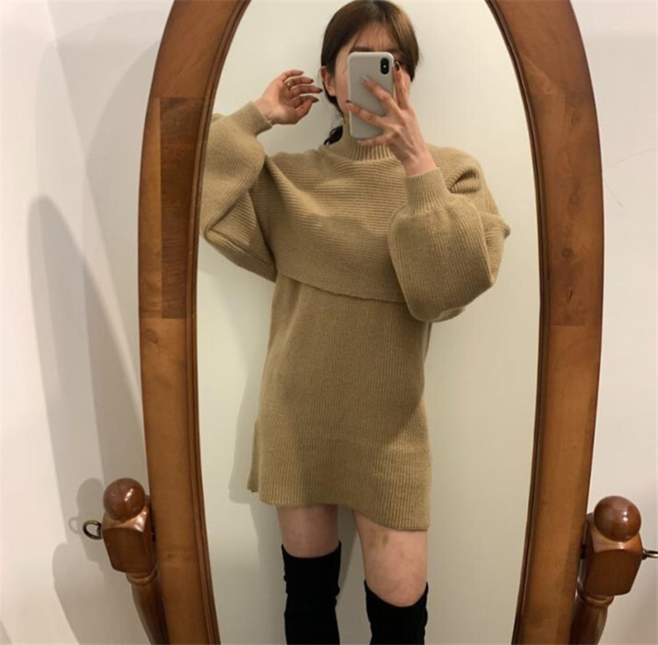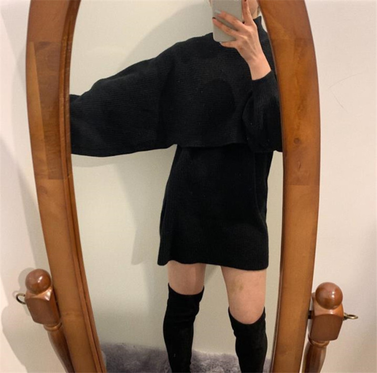 1枚でオシャレ見えが叶う 2点セット タートルネック ミニスカート ベストセータードレス