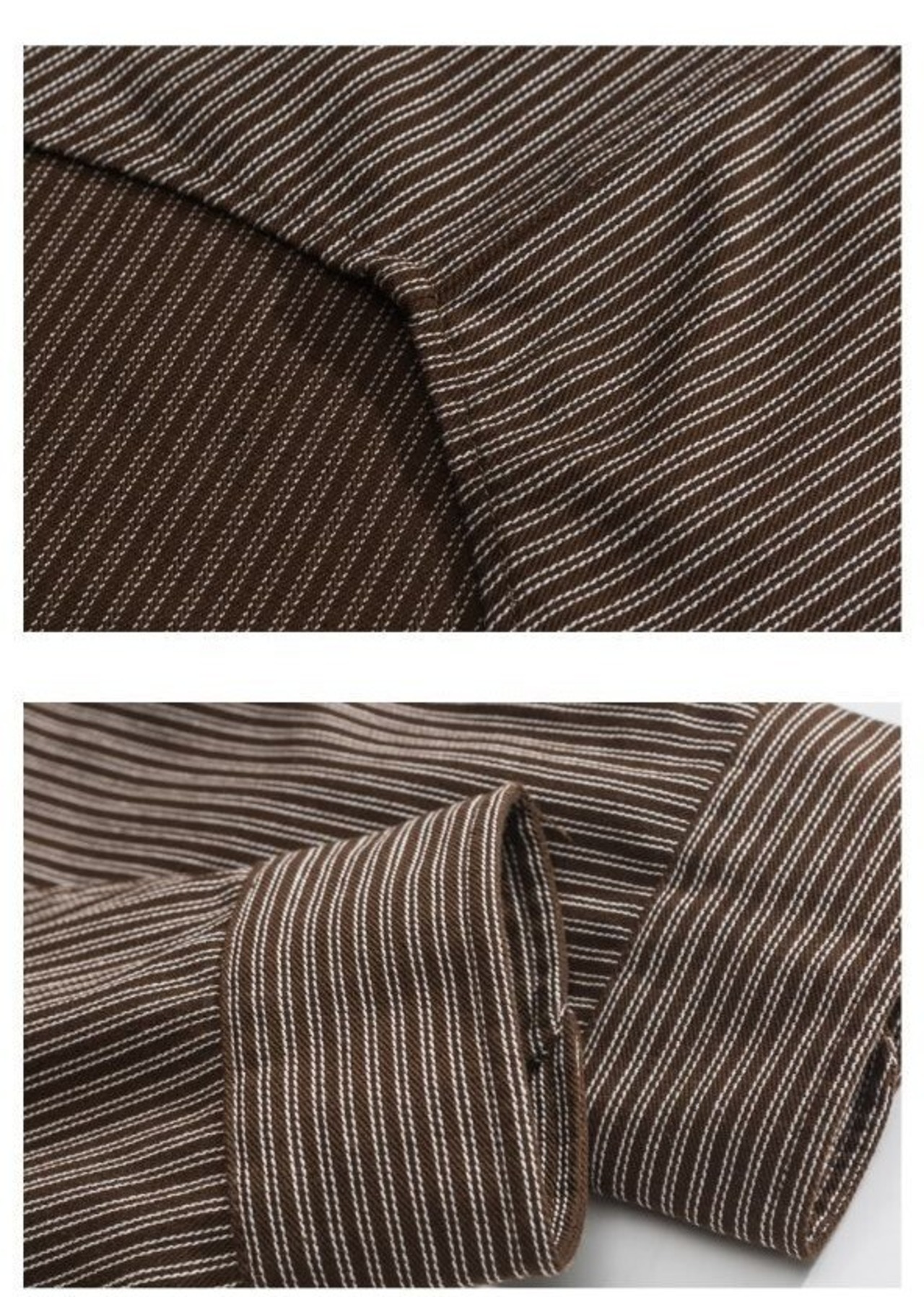 P17002メンズ ワイシャツ 長袖トッブス ダブルカラー 2024春夏新作 ペアルック ストライプ