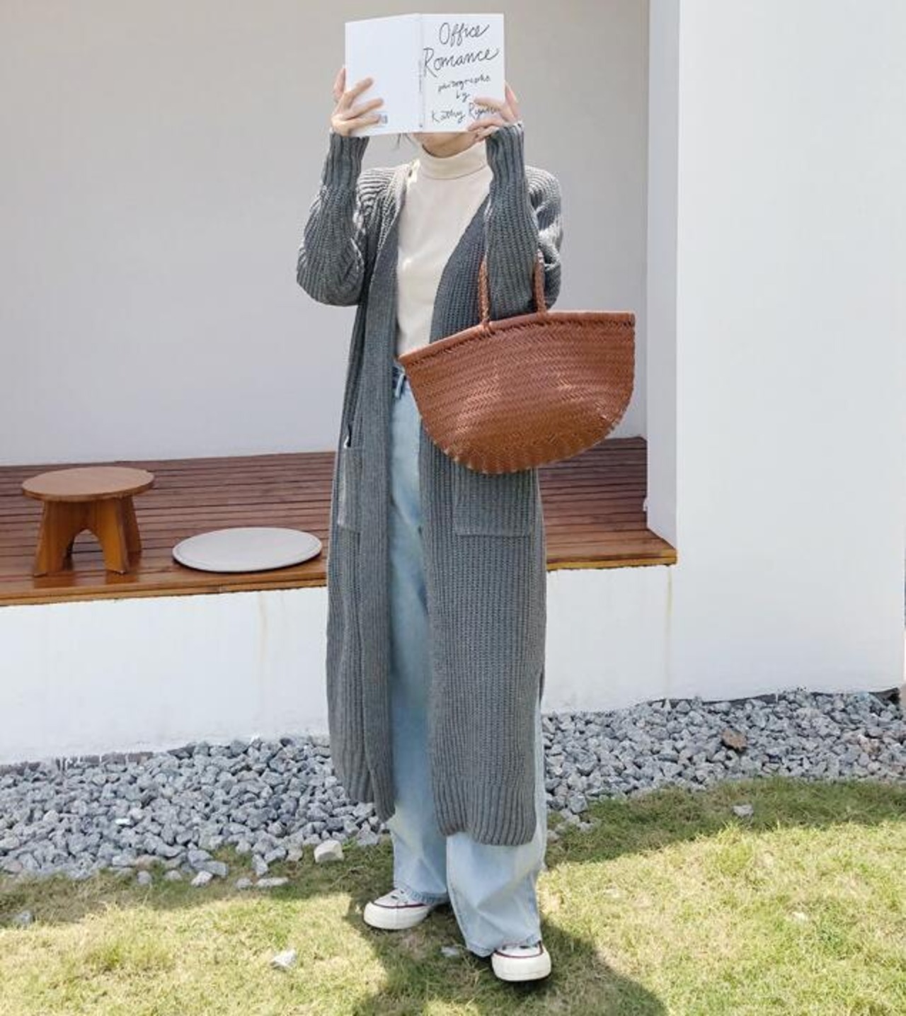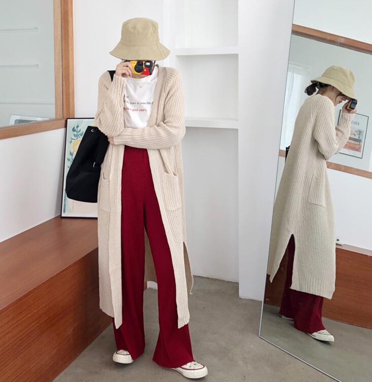 これひとつでおしゃれ度がアップする、ニットカーディガン。韓国風のデザインがおしゃれでありながら、長袖で暖かいので秋冬の装いにピッタリです。ロング丈なので体型カバーもしてくれますし、どんなコーディネートにも合わせやすいアイテム。