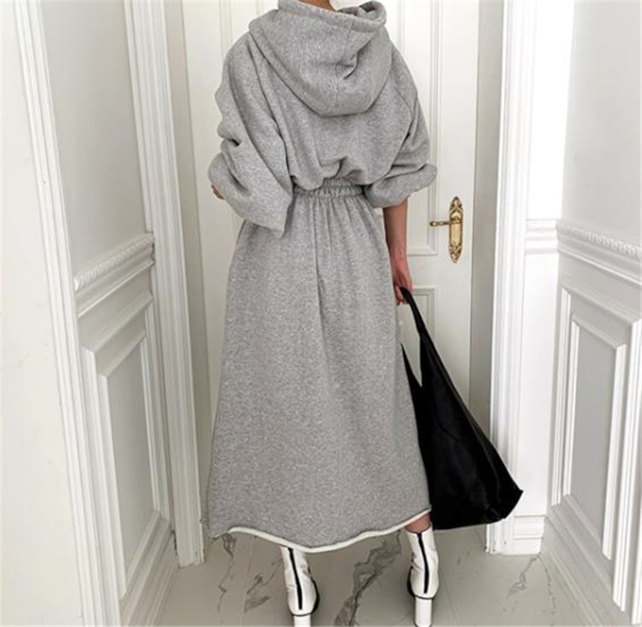エラスティックウエストが快適な着心地を演出する、人目を引く美人ボタン百掛けワンビース。ゆるやかなシルエットとボリューミーなフードデザインが、着るだけでオシャレな装いを完成させます。一枚でさっと羽織るだけで、トレンド感漂うスタイリングが叶います。