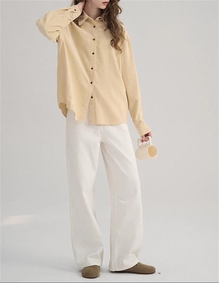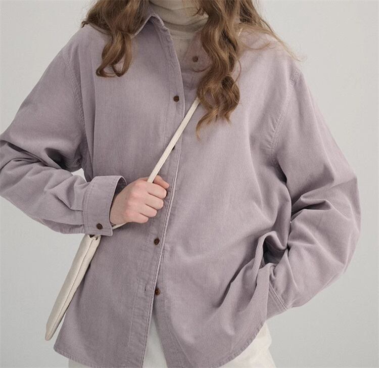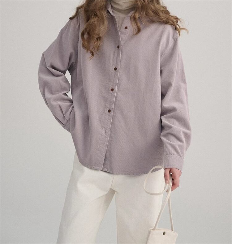 クーポン適用でお得に コットン コーデュロイ スリム 三色 トップス ゆったりする ブラウス 長袖