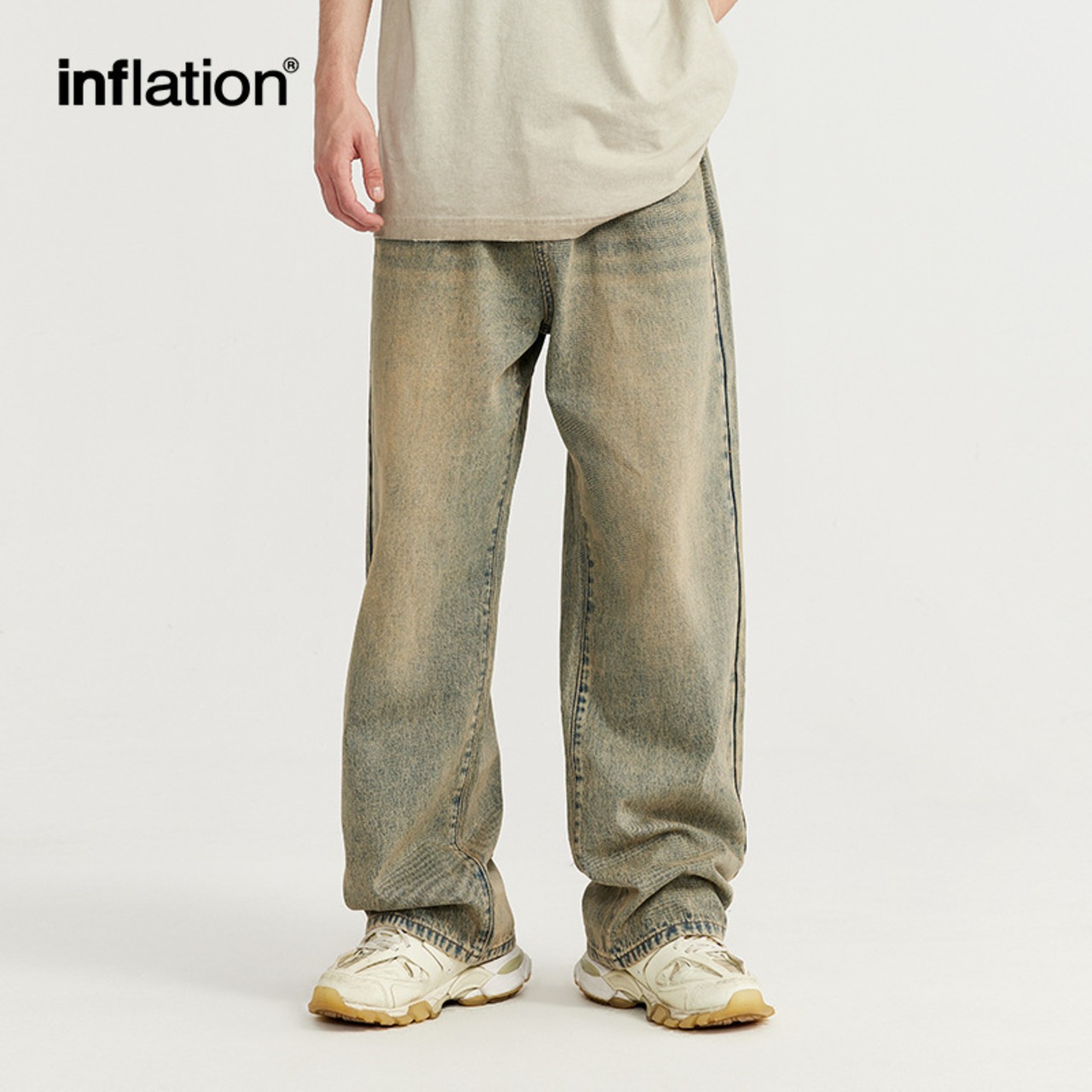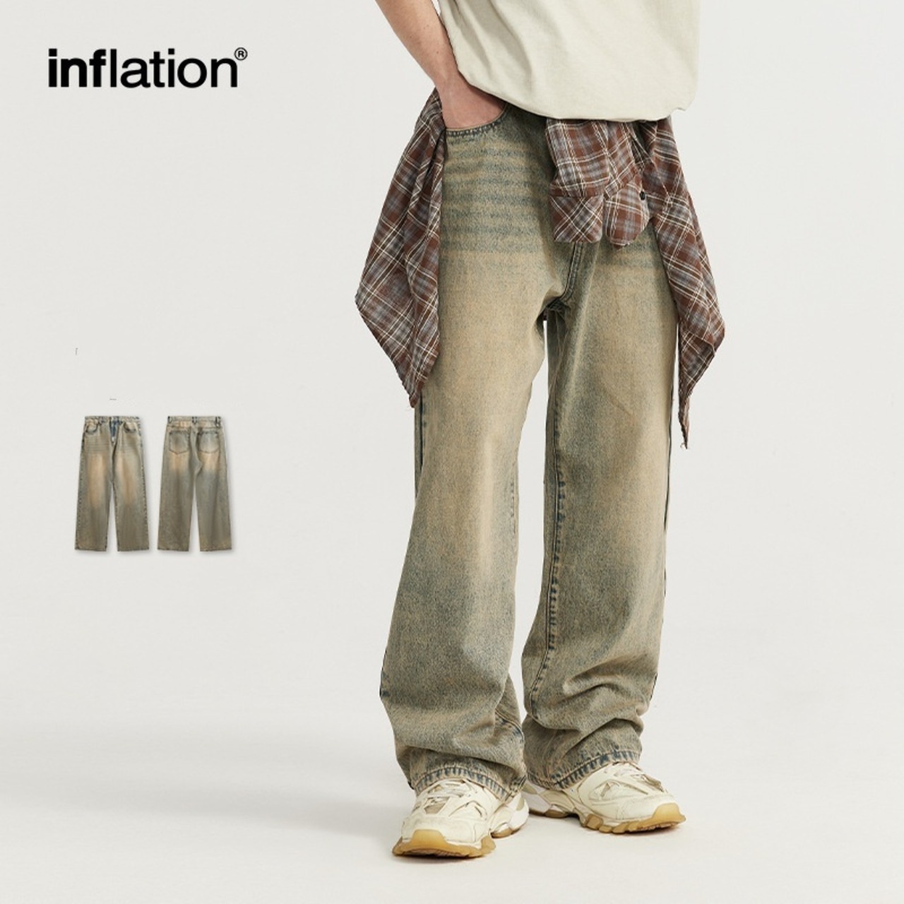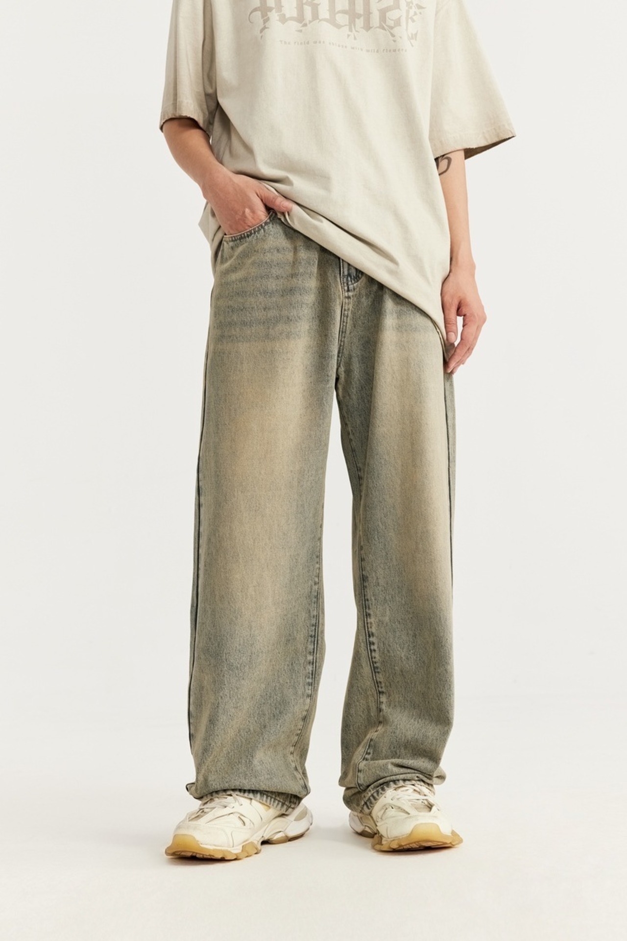 P17009 ジーンズ ヴィンテージ ファッション ワイド メンズ男 ズボン 2024新作春夏