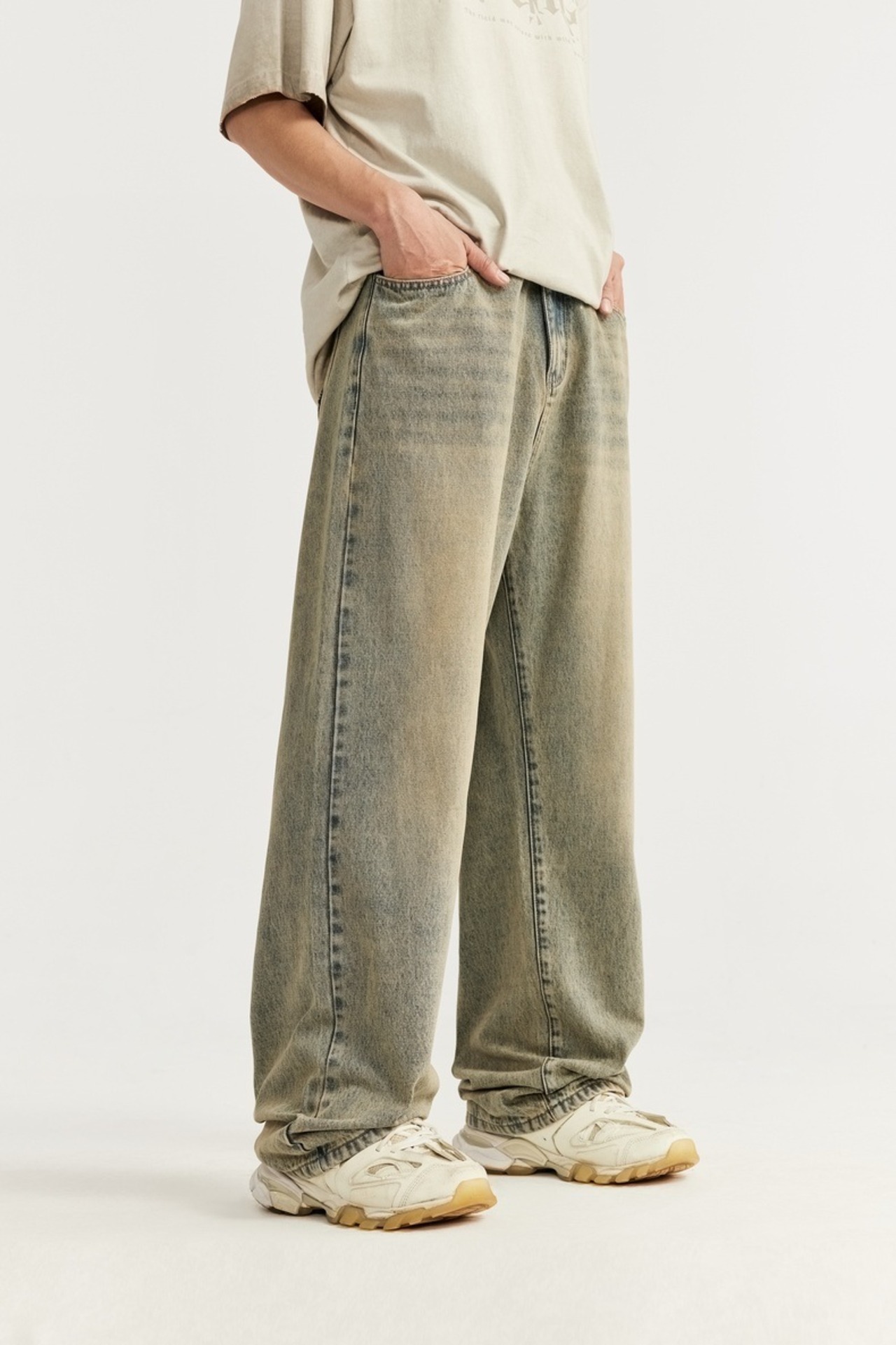 P17009 ジーンズは、ヴィンテージ感満載のファッショナブルなデザインが特徴のワイドパンツです。男性におすすめのアイテムで、2024年の新作として春夏にピッタリのスタイリングを演出します。デニム素材のジーンズは、スタイリッシュでクールな印象を与えます。