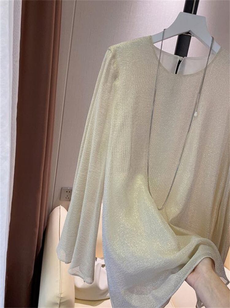 ご要望多数につき再販開始 気質 長袖 シャツ トップス ホーンスリーブ 上着 肌にやさしい スリム