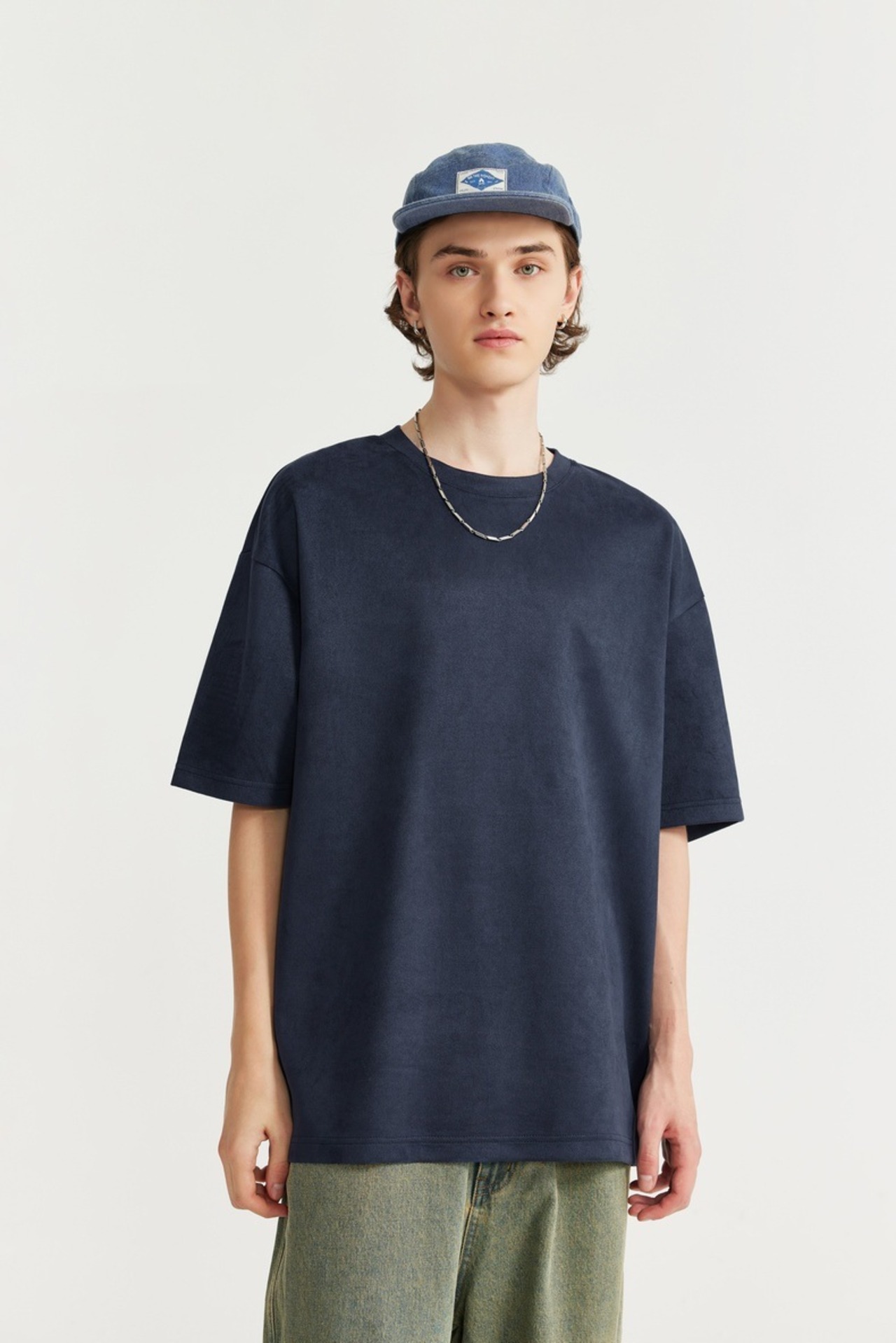 E16607メンズ Tシャツは、2024年の新作春夏アイテムです。スエード素材を使用しており、上質さとカジュアルさを兼ね備えた一枚です。半袖のラウンドネックデザインは、どんなボトムスとも相性抜群。無地なのでシンプルで使いやすく、様々なスタイリングに合わせやすいのも魅力です。