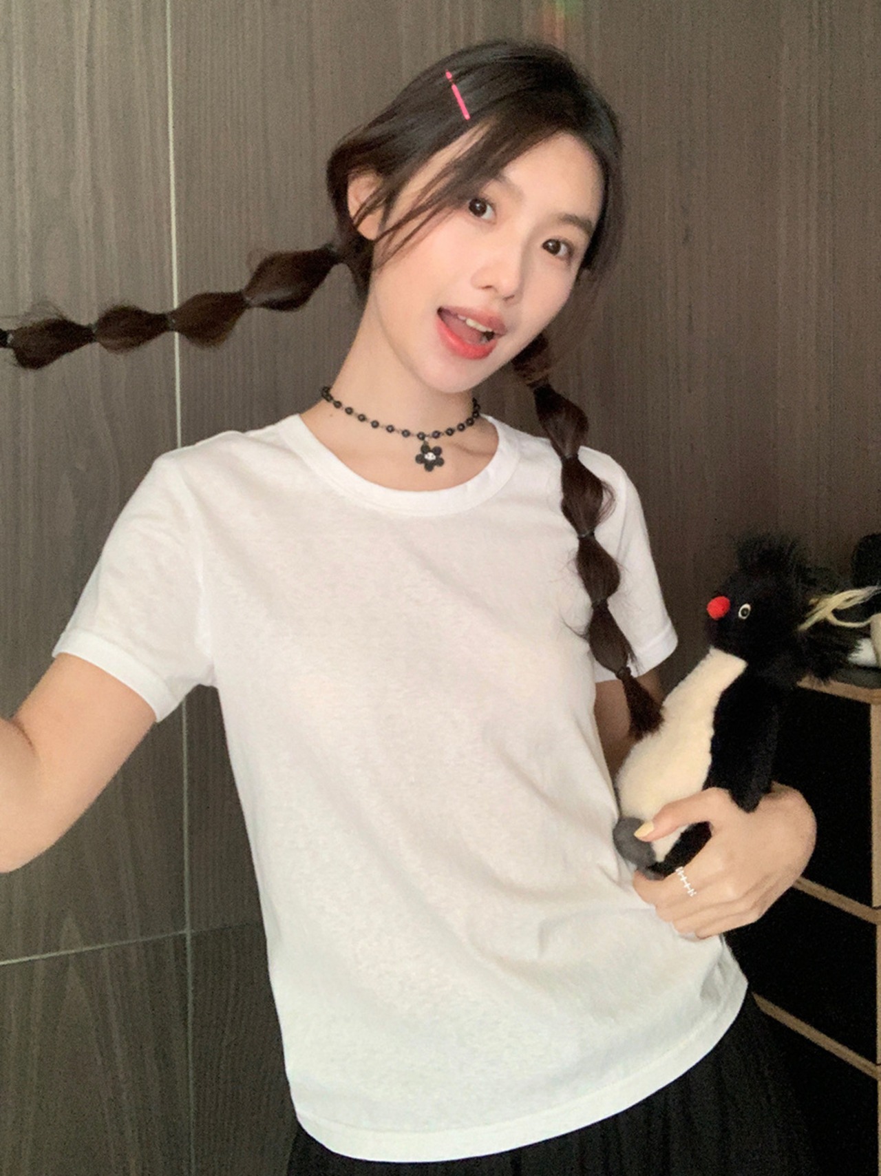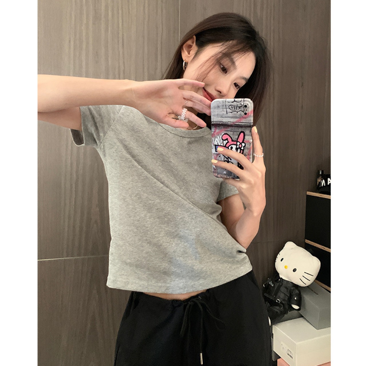 <u23913 トップス>は、2024年の春にピッタリな短袖Tシャツです。シンプルでスタイリッシュなデザインが特徴で、どんなコーディネートにも馴染みます。伸縮性のある素材で着心地も抜群。首元は女性らしいラウンドネックで、華やかさをプラスしてくれます。